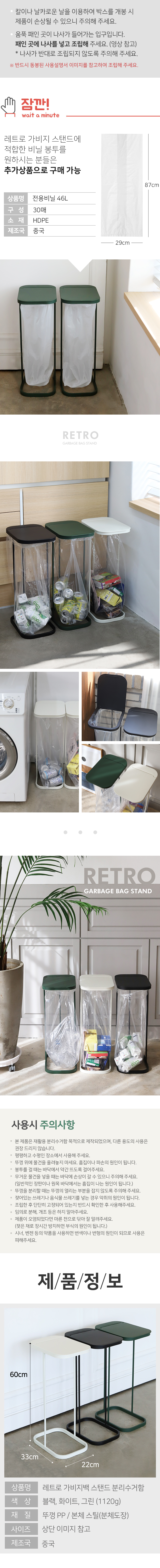 [특가 ~1/26]리본제이 레트로 가비지백 스탠드 분리수거함 쓰레기봉투 거치대 3P세트