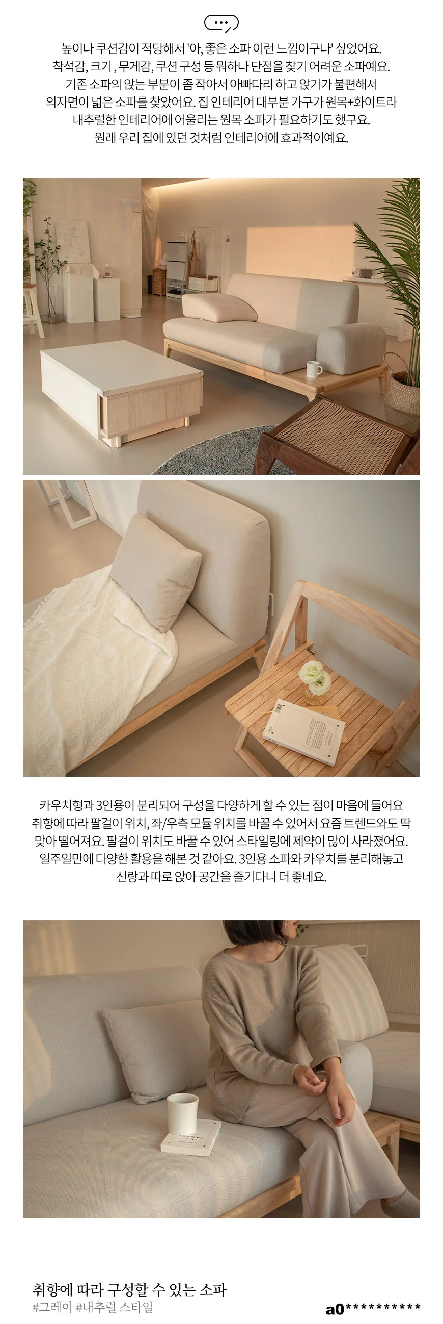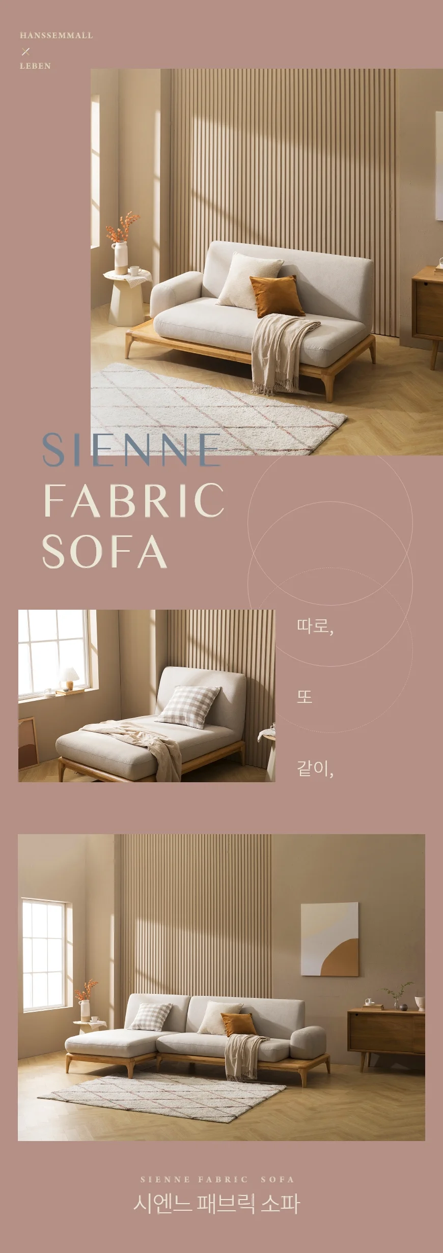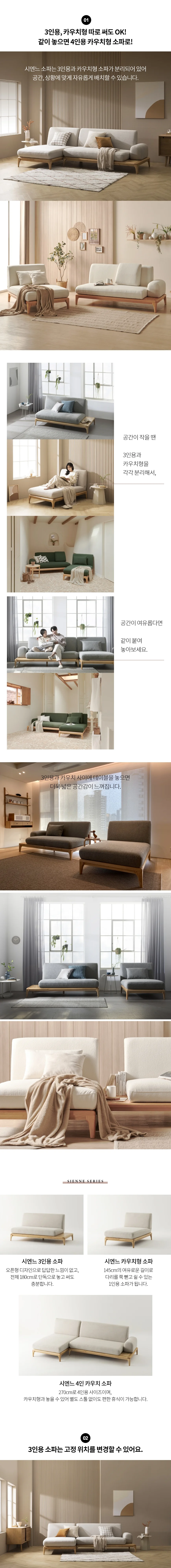 (한샘몰pick) 레벤 시엔느 원목 패브릭소파 3인용 (4종/택1)