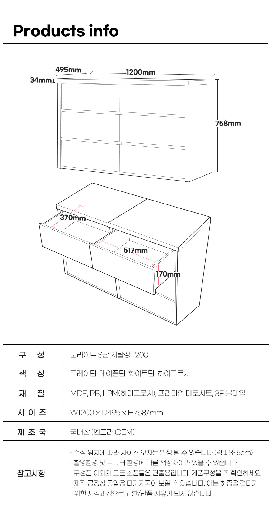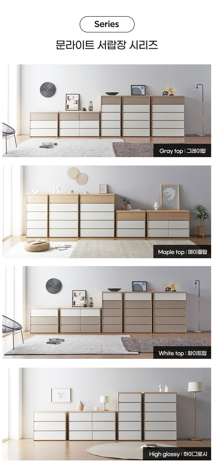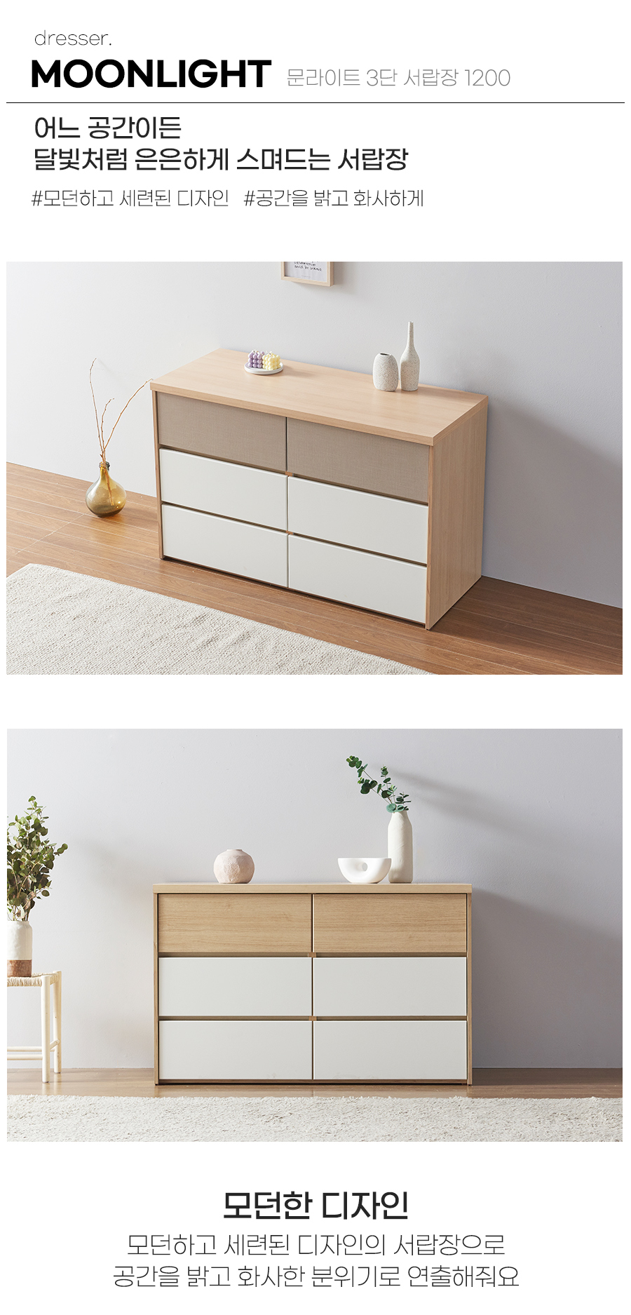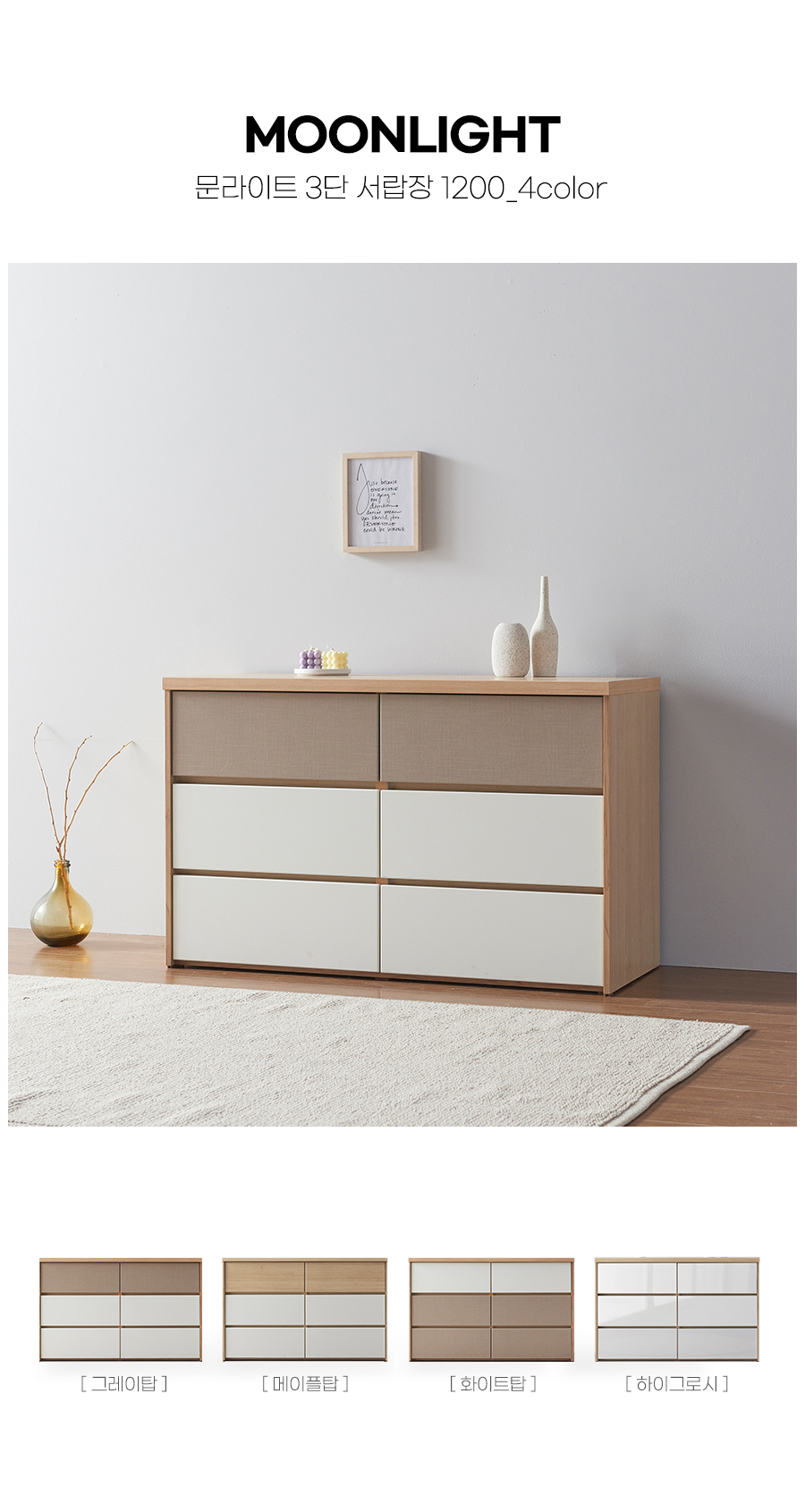 문라이트 3단 와이드 서랍장 1200 - 4color