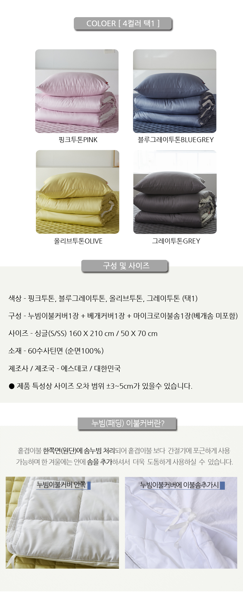 60수사틴순면 블루투톤 누빔이불베개커버솜세트S싱글