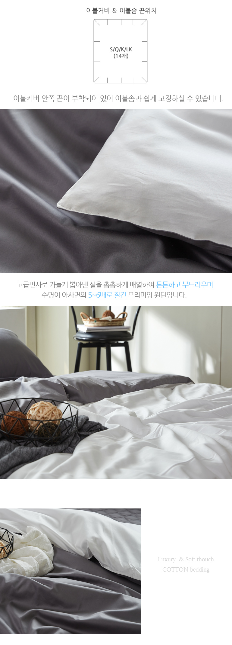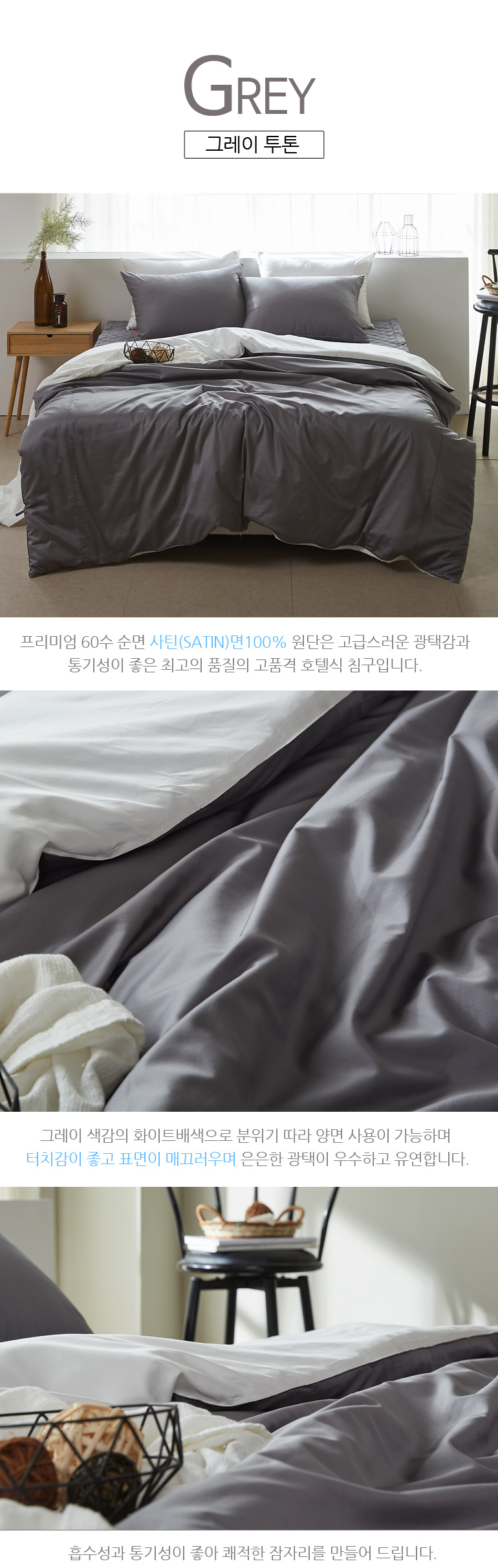 60수사틴 그레이투톤순면이불커버패드세트호텔침구K킹