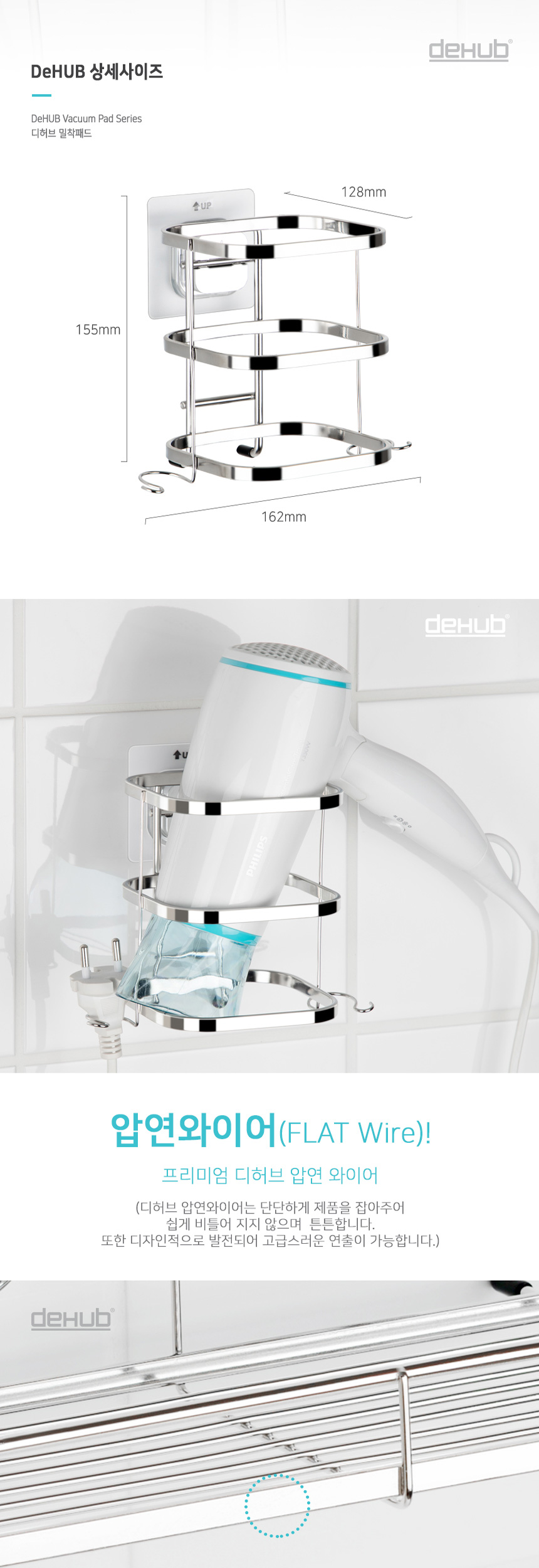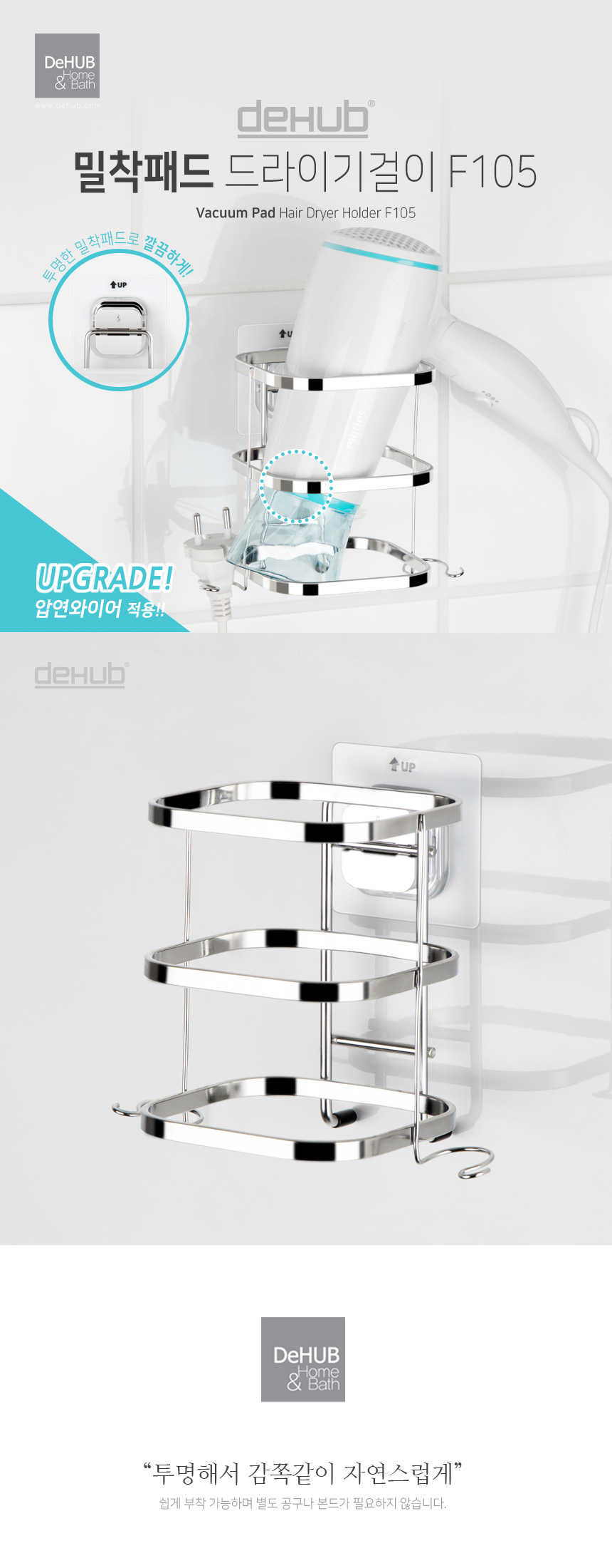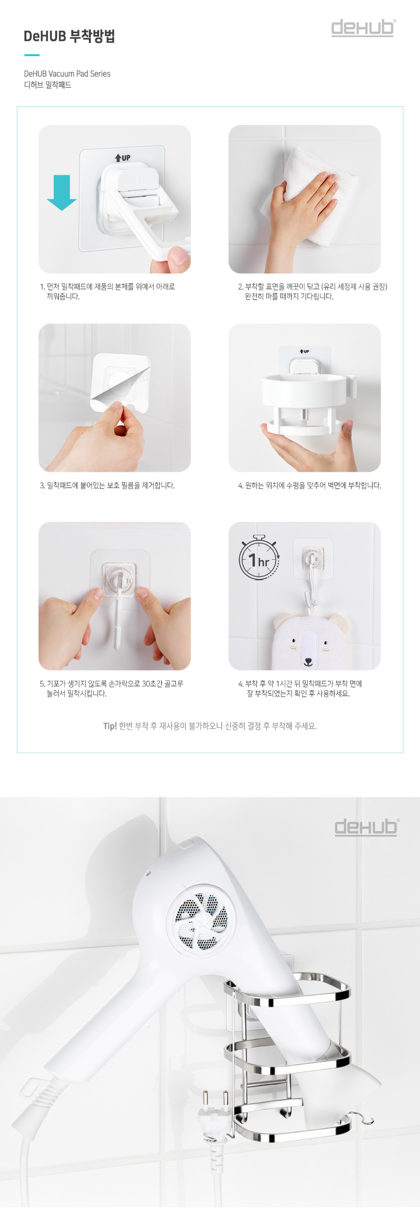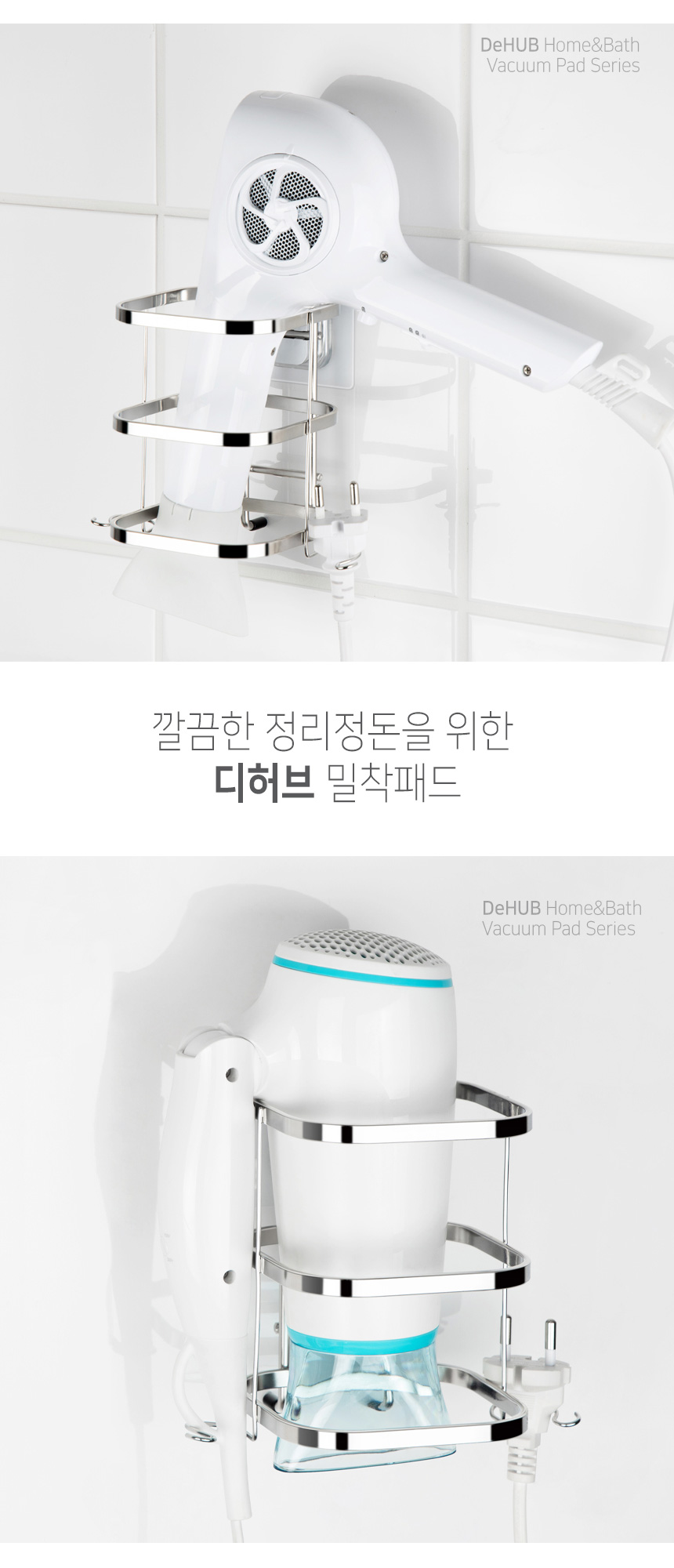 디허브 밀착패드 스텐 압연 드라이기걸이 F105 부착식 접착식