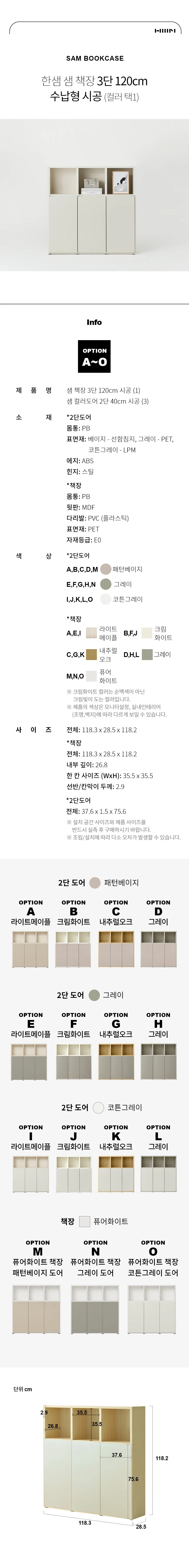 샘 책장 3단 120cm 수납형 시공 (컬러 택1)