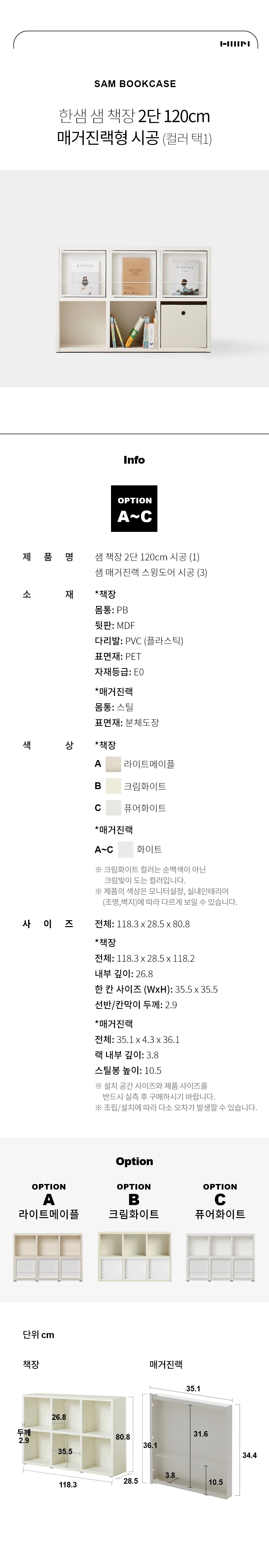 샘 책장 2단 120cm 매거진랙형 시공 (컬러 택1)