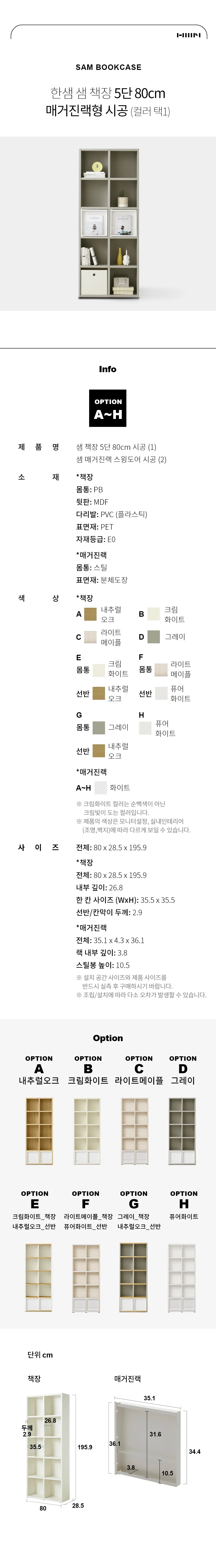 샘 책장 5단 80cm 수납형 시공 (컬러 택1)