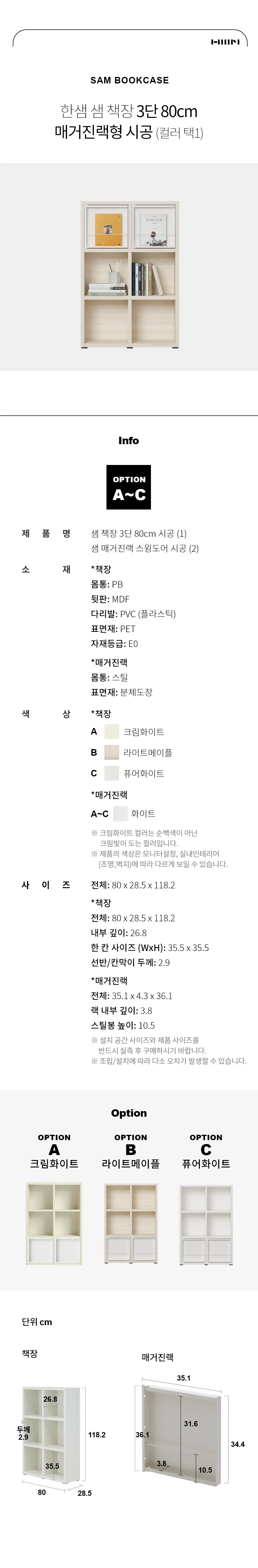 샘 책장 3단 80cm 매거진랙형 시공 (컬러 택1)
