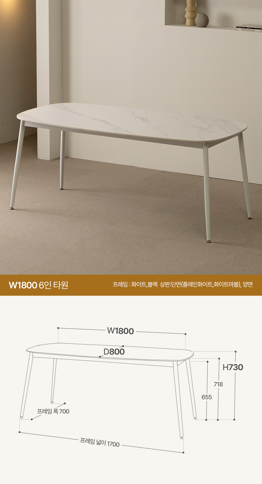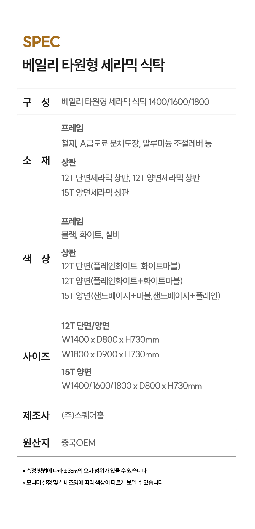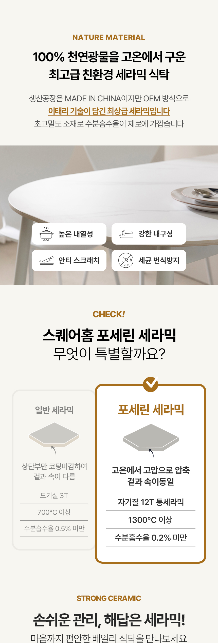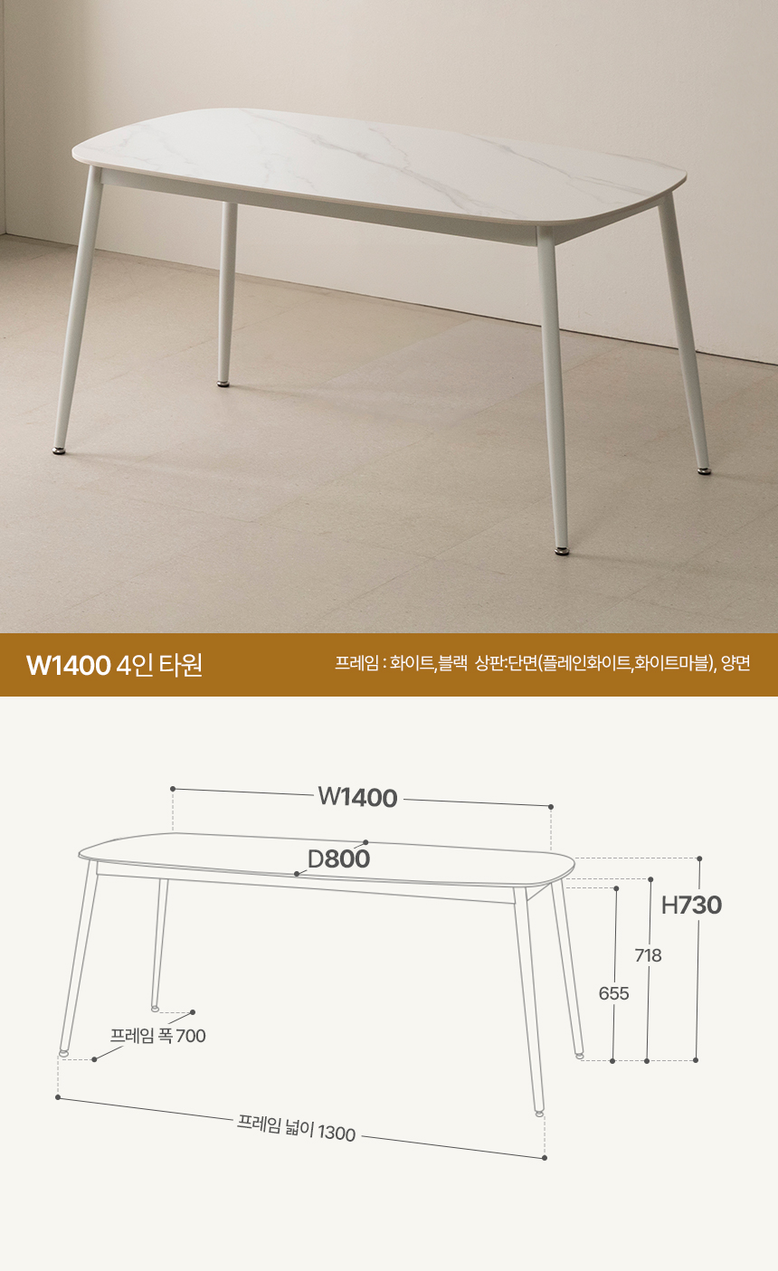 베일리 골드 4인용 타원형 세라믹식탁 1400