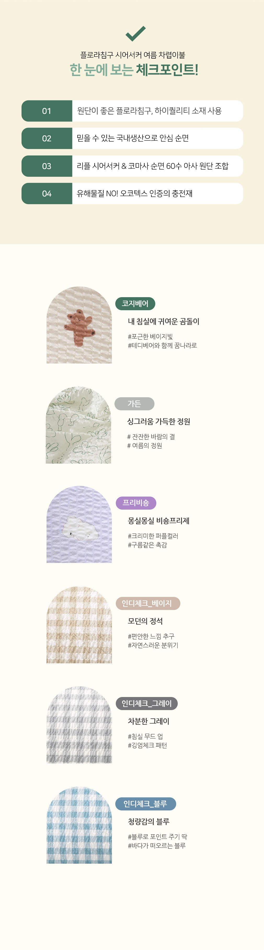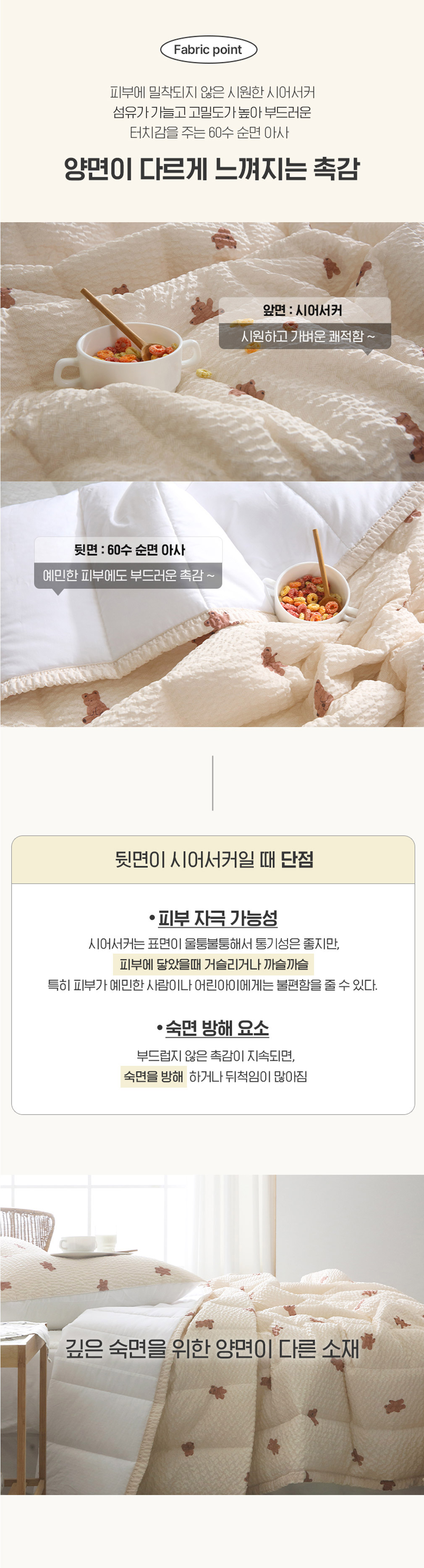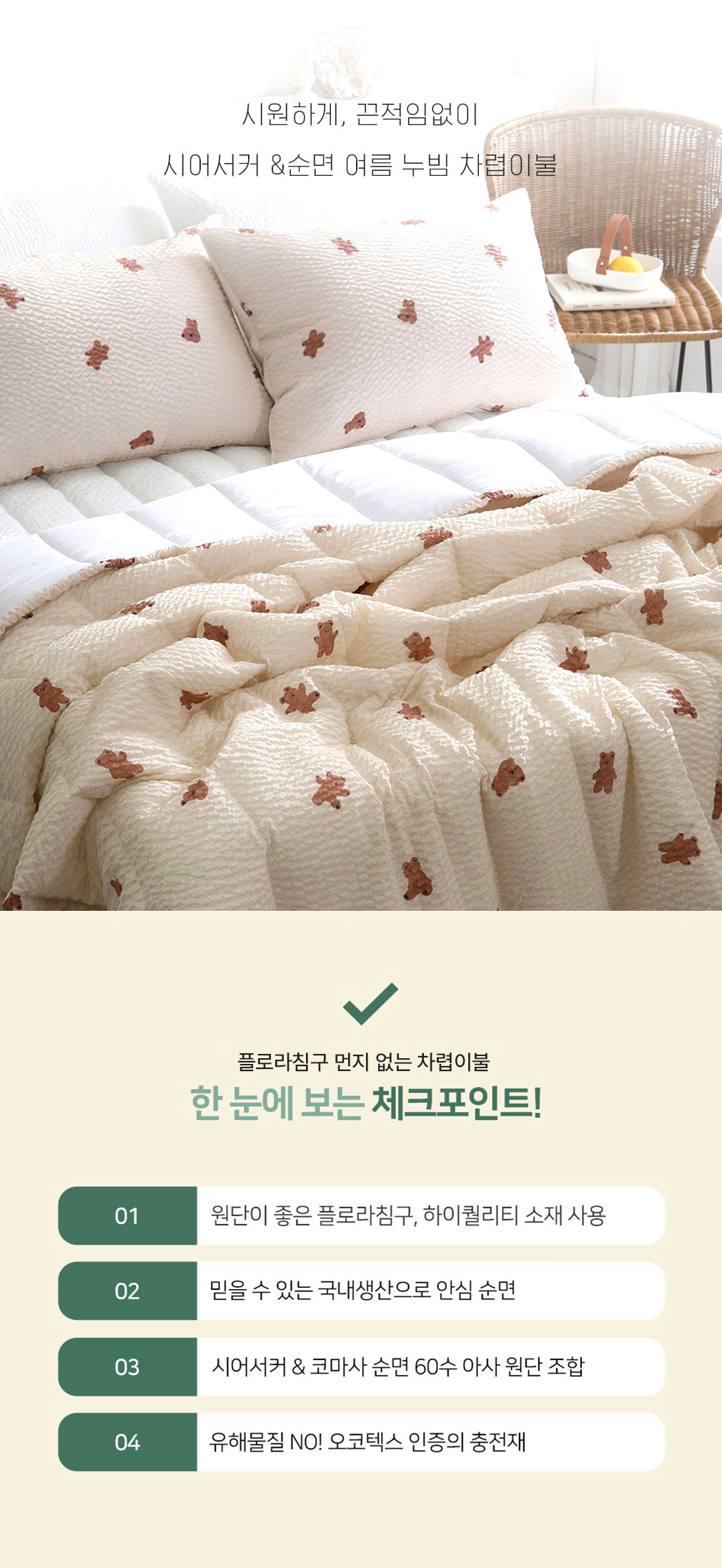 애니멀 시어서커 60수 아사면 여름 차렵이불 패드세트 SS/Q