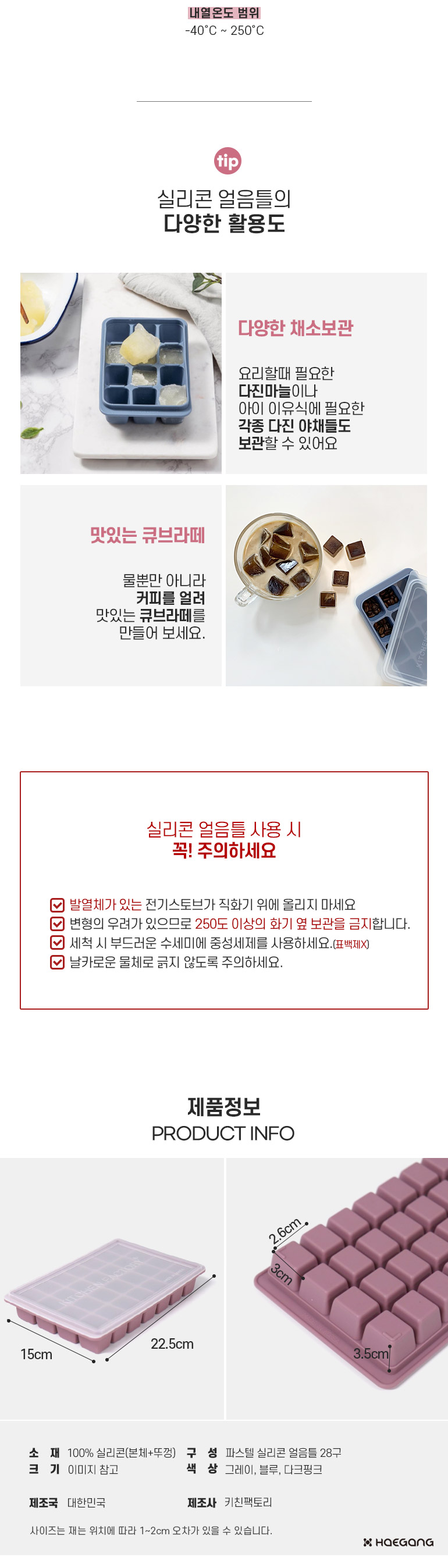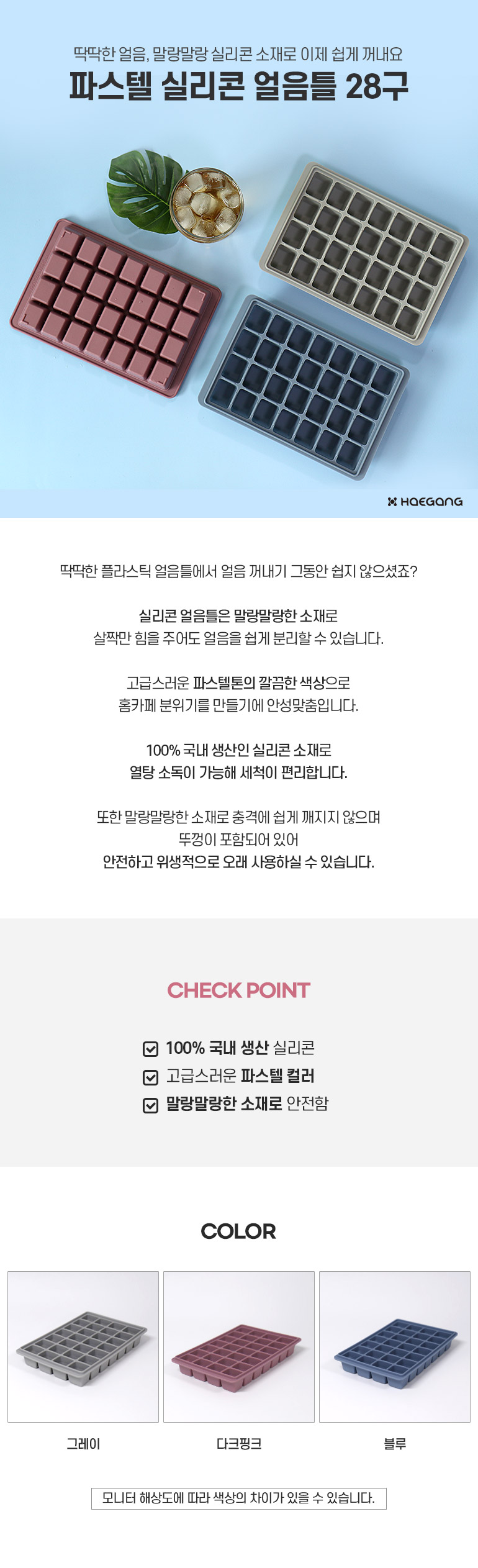 파스텔 실리콘 얼음틀 28구 / 얼음 트레이 아이스 라떼 홈카페 큐브 이유식 다진마늘 몰드 미니