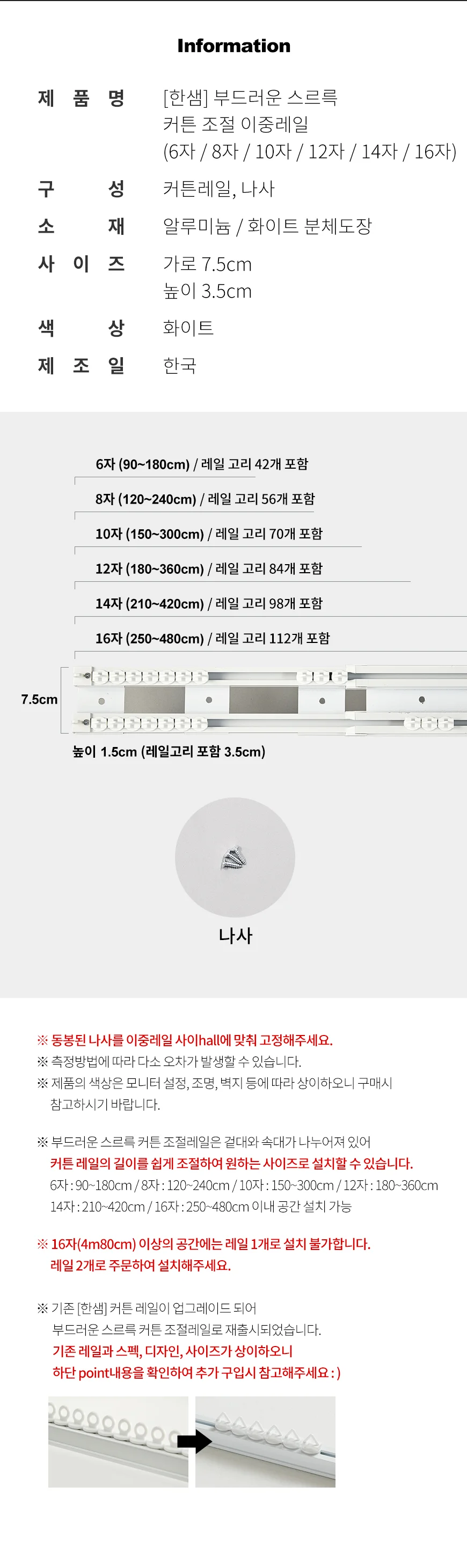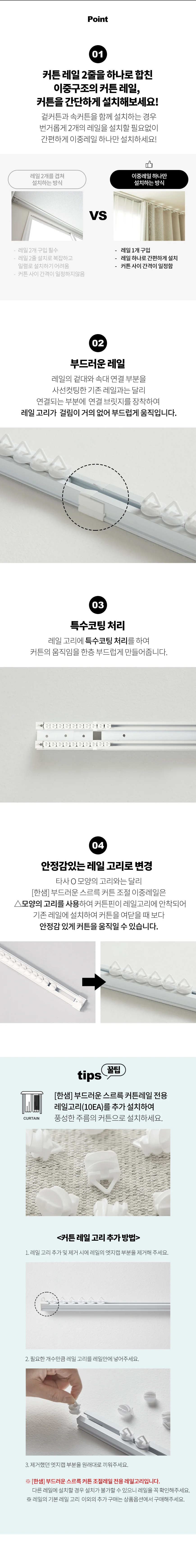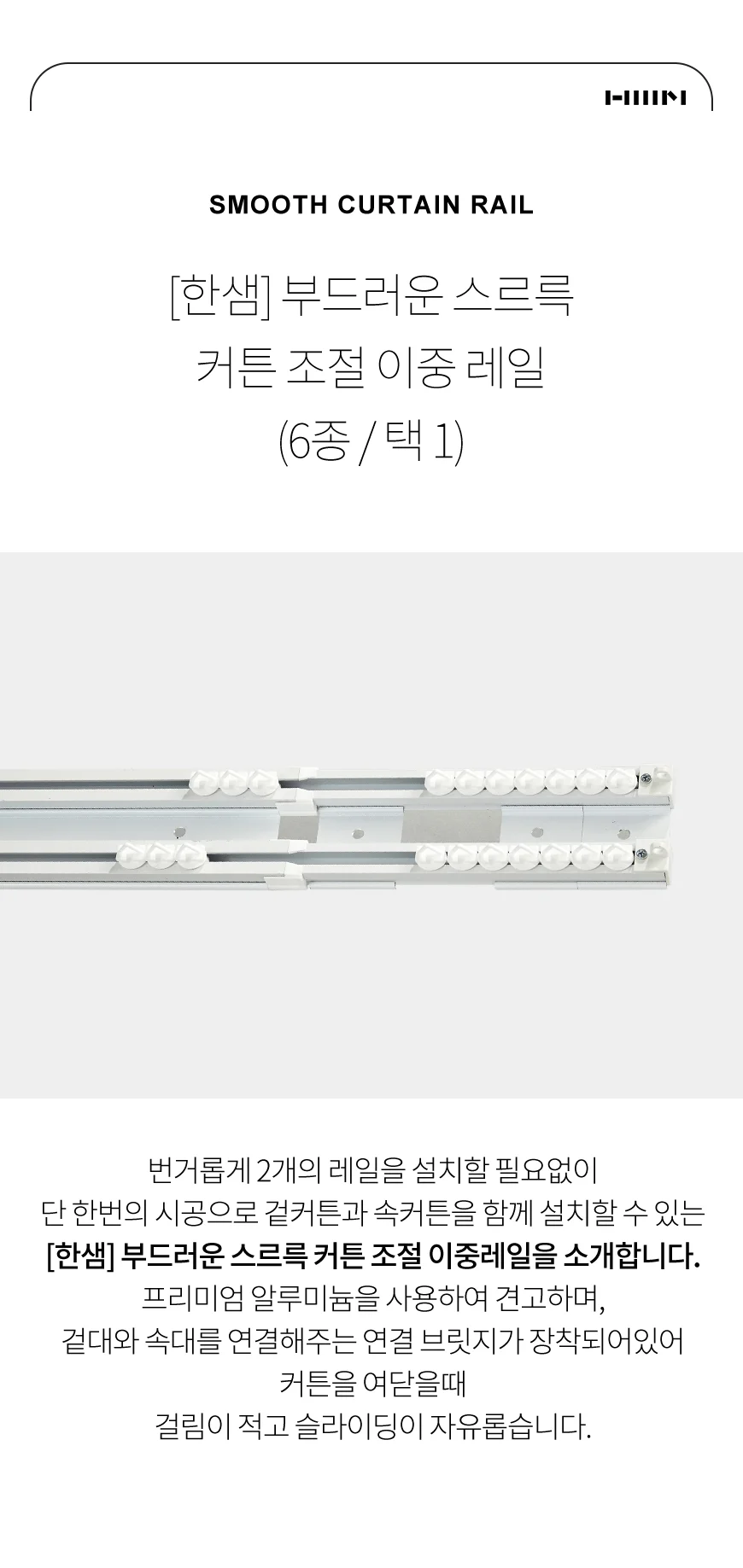 부드러운 스르륵 커튼 조절 이중레일(6종 중 택1)
