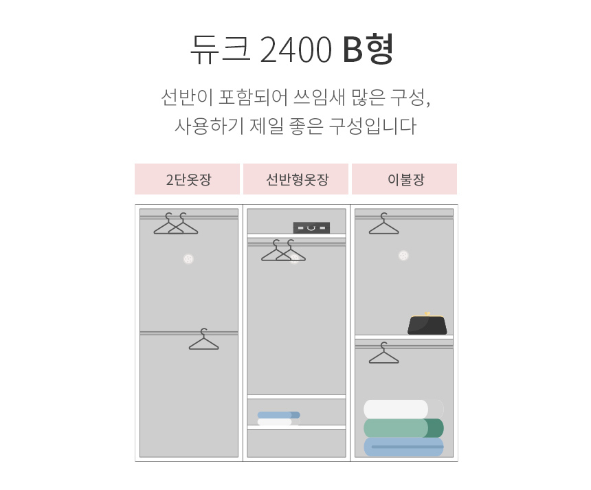 플라망 듀크 슬라이딩 옷장 2400 슬라이드장 5type(고급댐핑도어)