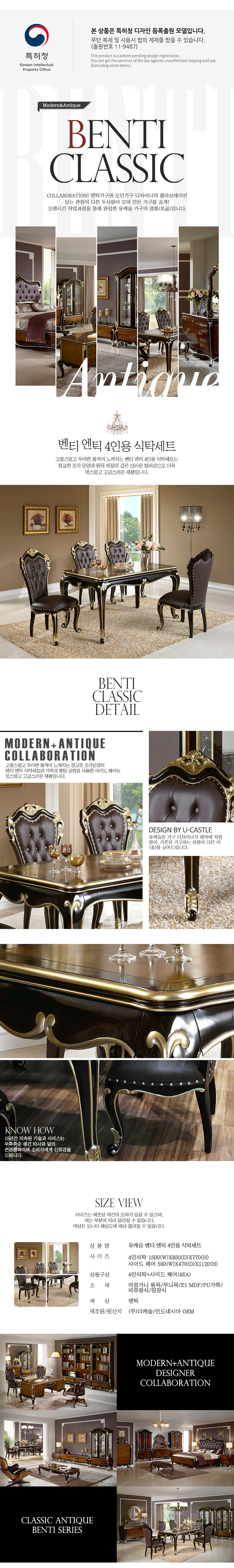 유캐슬 리누스 엔틱 4인식탁세트(일반의자4)