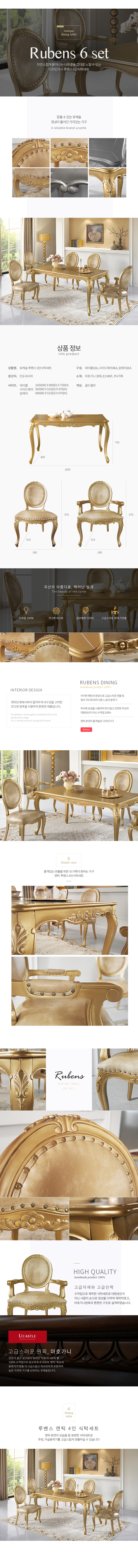 유캐슬 루마 엔틱 6인용 식탁세트(일반의자4+팔걸이의자2)