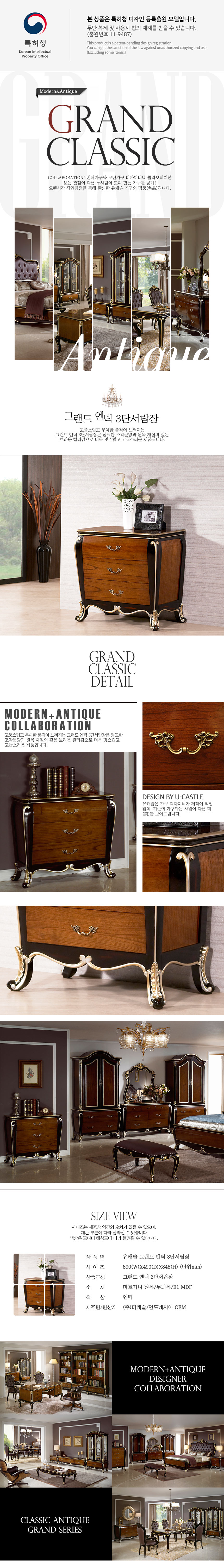 유캐슬 리누스 엔틱 3단서랍장