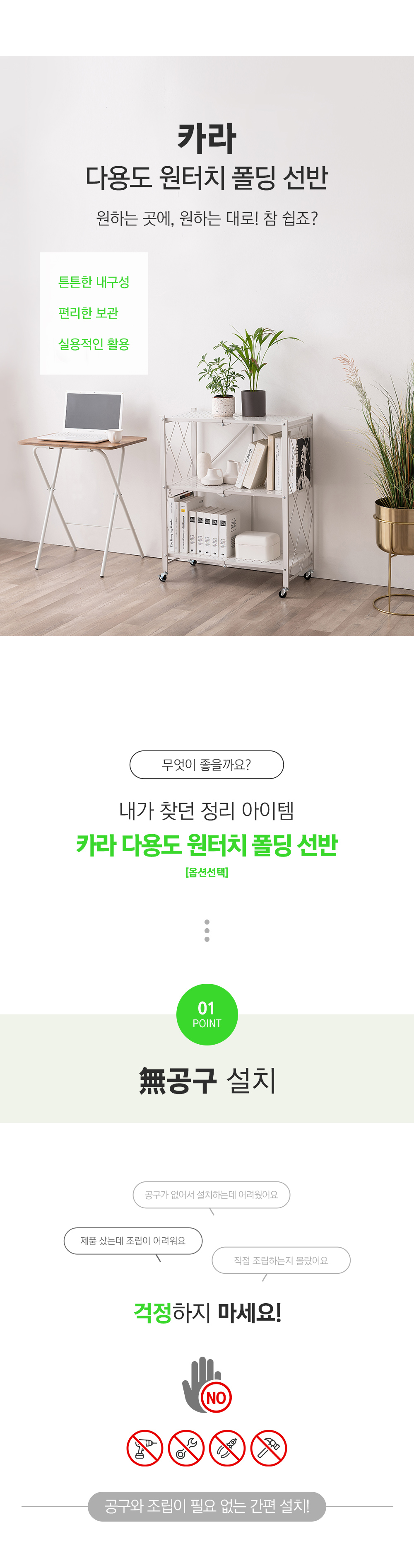 숨결 쥴리 원터치 철제 이동식 5단 폴딩선반
