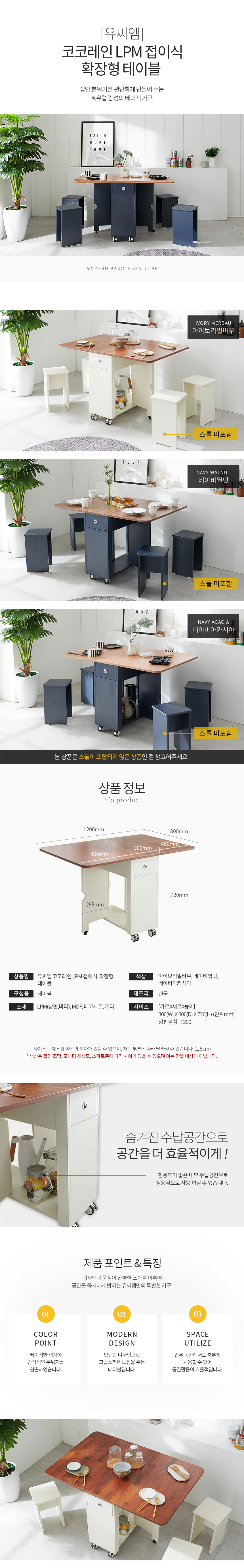 유씨엠 코코레인 LPM 접이식 확장형 테이블식탁 (스툴별도)