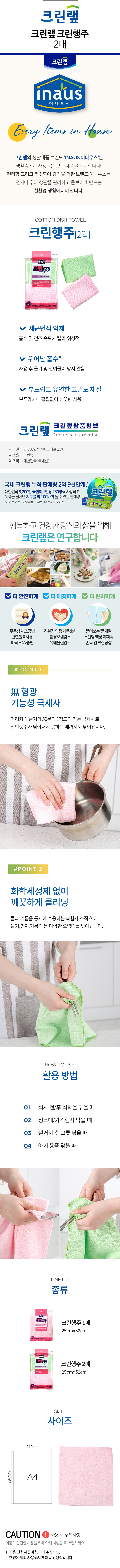 크린랩 크린 행주 25cmX32cm 2매 2개 주방행주 면행주 업소용 카페 커피 TOP_2150010s2