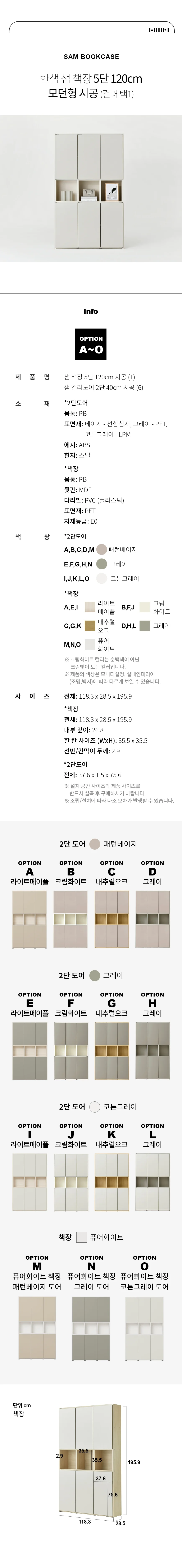 샘 책장 5단 120cm 모던형 시공 (컬러 택1)