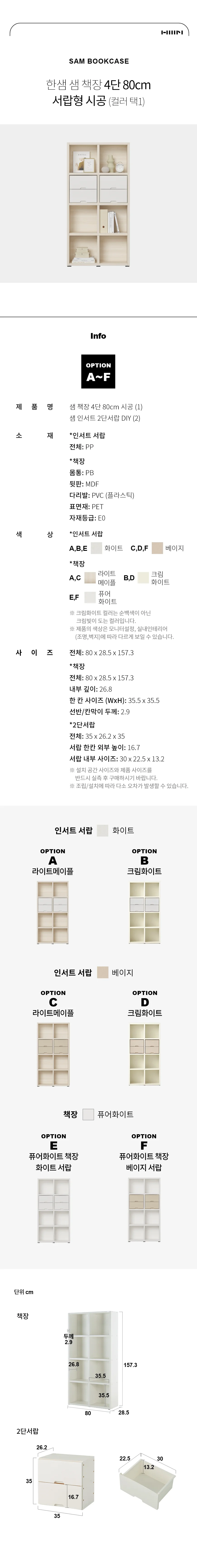 샘 책장 4단 80cm 서랍형 시공 (컬러 택1)