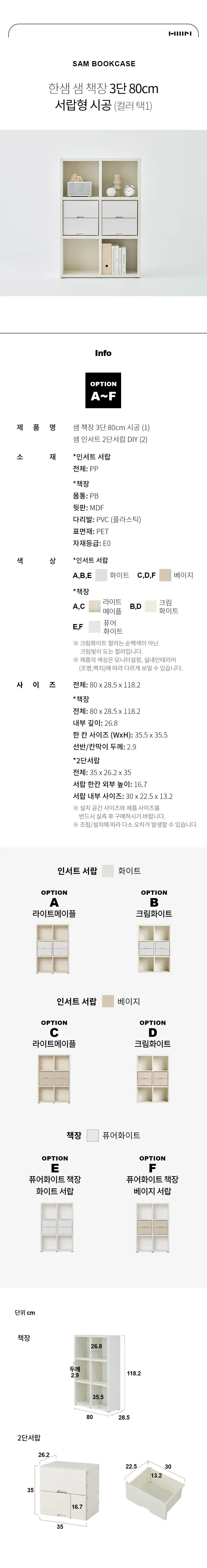 샘 책장 3단 80cm 서랍형 시공 (컬러 택1)
