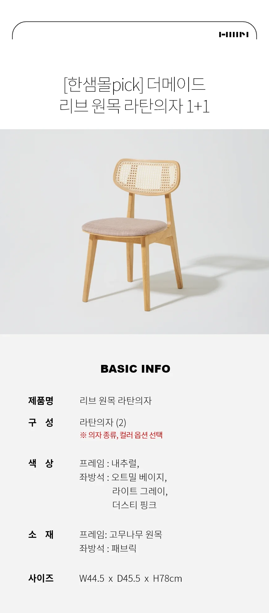 (한샘몰pick) 더메이드 리브 원목 라탄의자 1+1