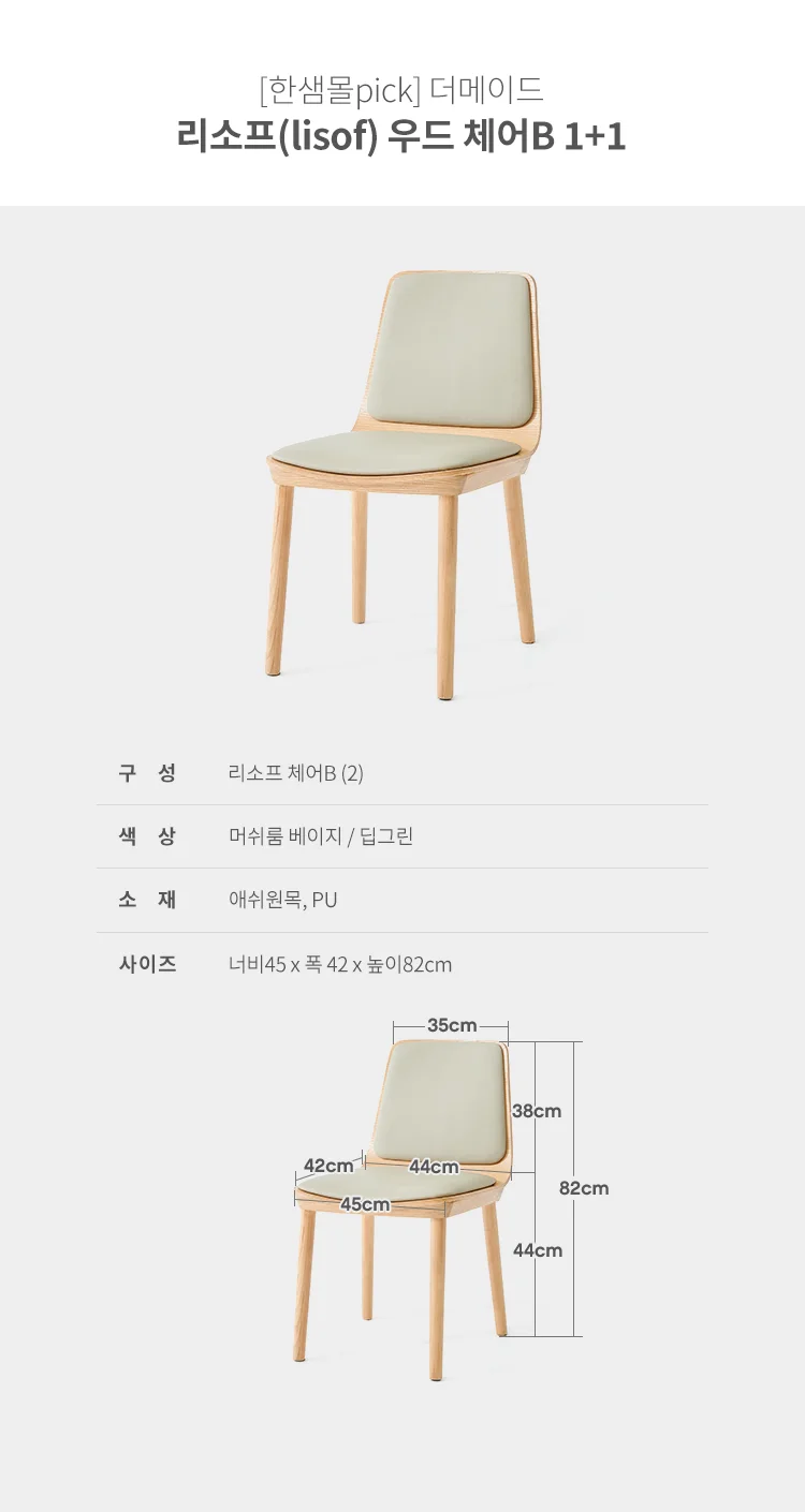 (한샘몰pick) 더메이드 리소프 원목 식탁 의자_B형 1+1