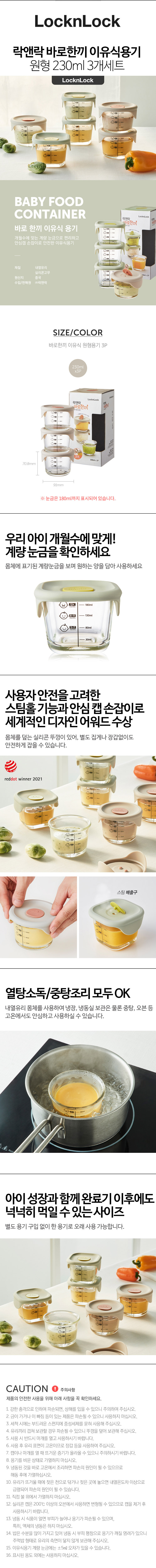 락앤락 바로한끼 이유식 원형 용기 3P세트 보관 유리 유아 식기 전자레인지 냉동 LLG508S3