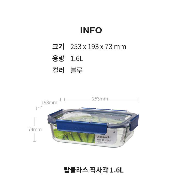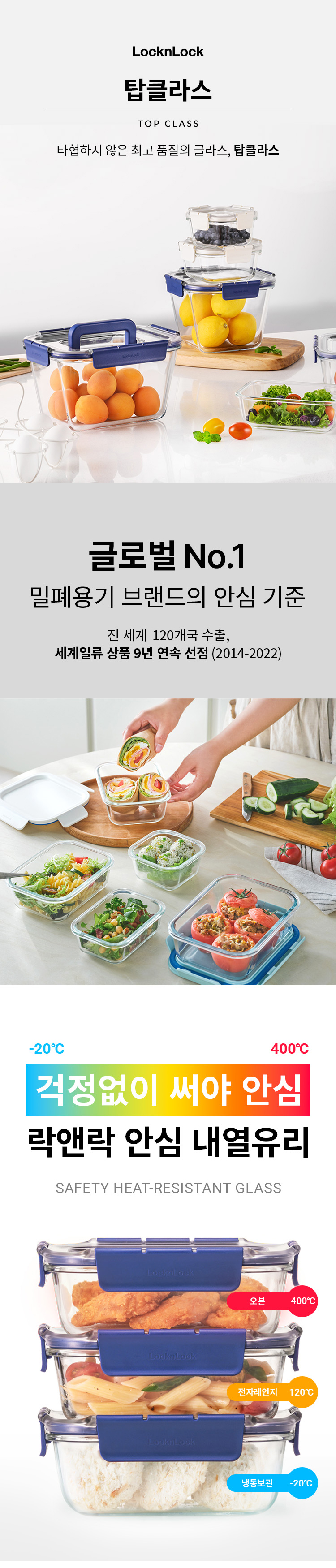 락앤락 탑클라스 1.6L 내열 유리 밀폐 용기 전자레인지 반찬통 냉동 보관 밥 LBG454