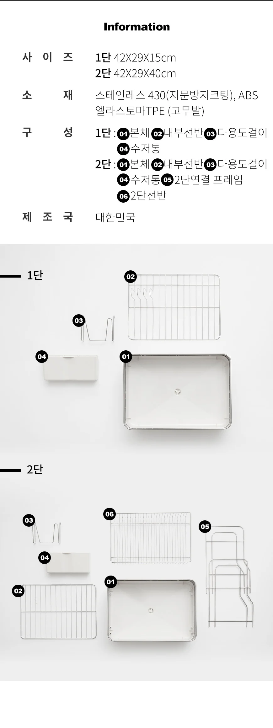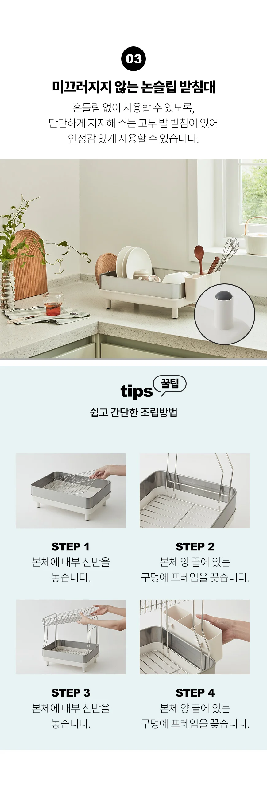 (한샘몰pick) 4BNK 모던스틸 컴팩트 식기건조대 1단/2단