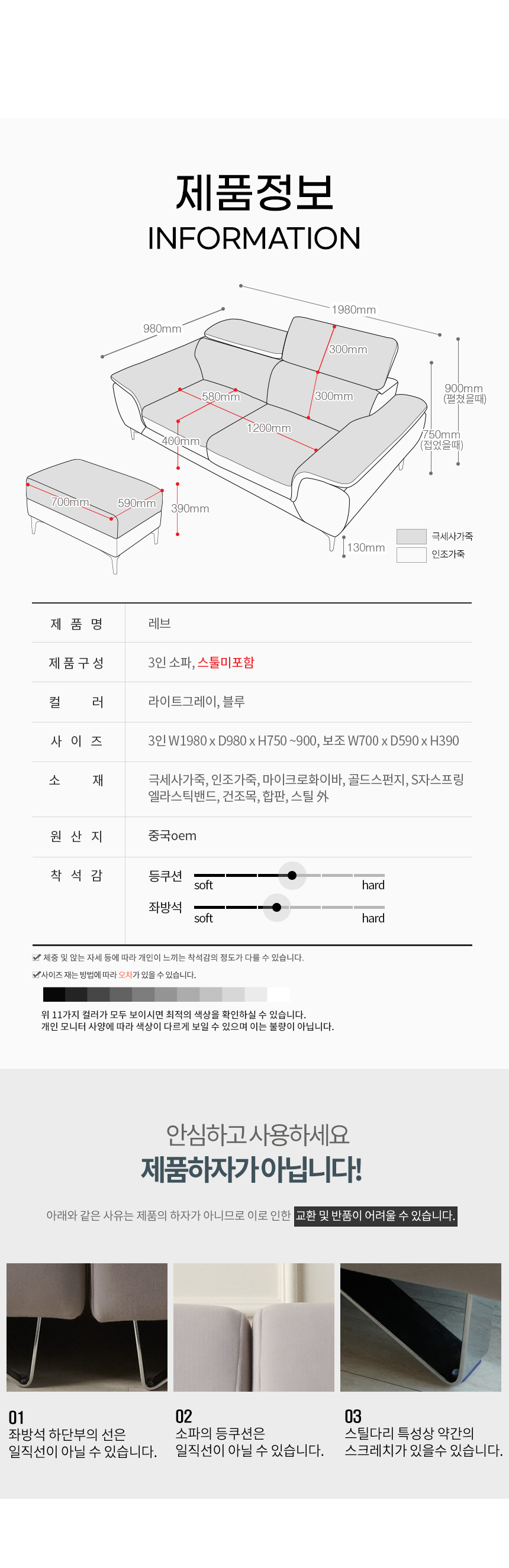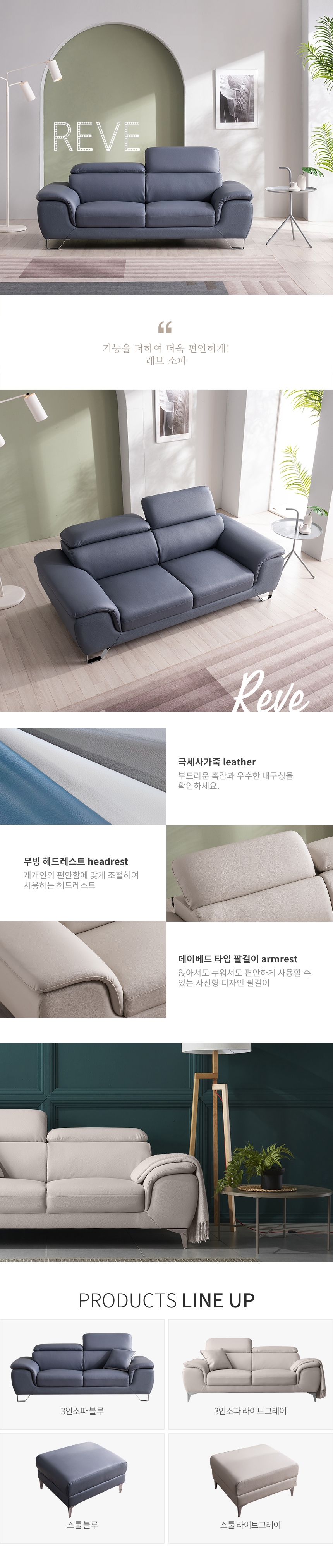 우아미가구 레브 3인용 무빙헤드 가죽 소파 2color
