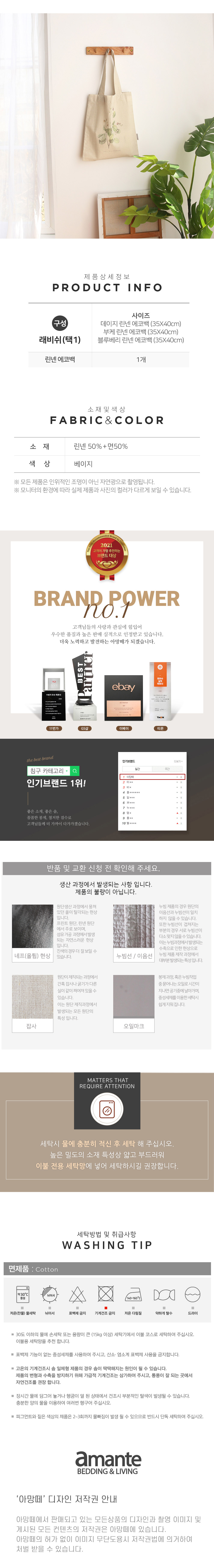 아망떼 래비쉬 내츄럴 린넨에코백