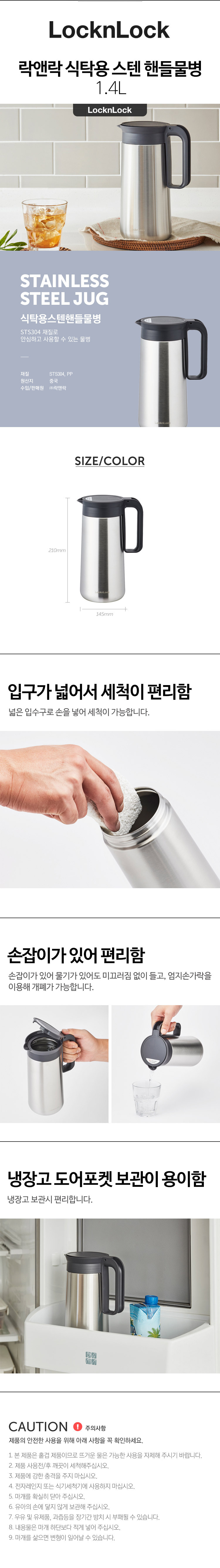 락앤락 스텐 핸들 물병 1.4L 물통 냉장고 보틀 카페 투명 가정용 업소용 손잡이 LHC7002SLV