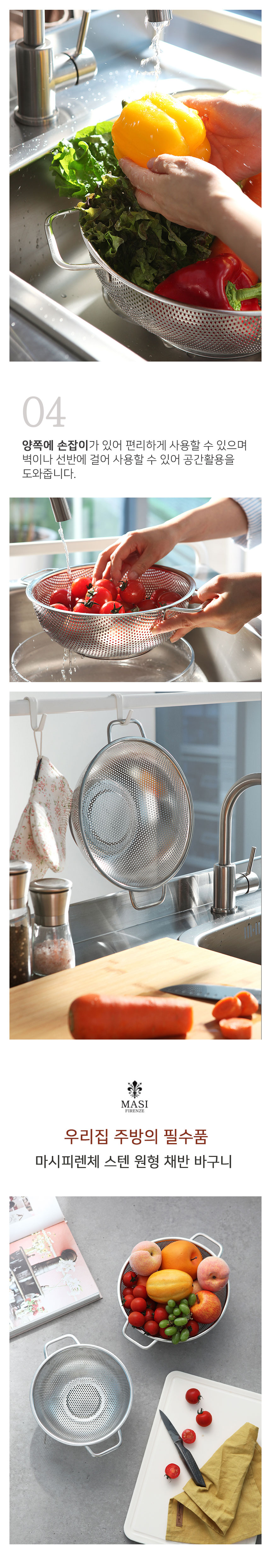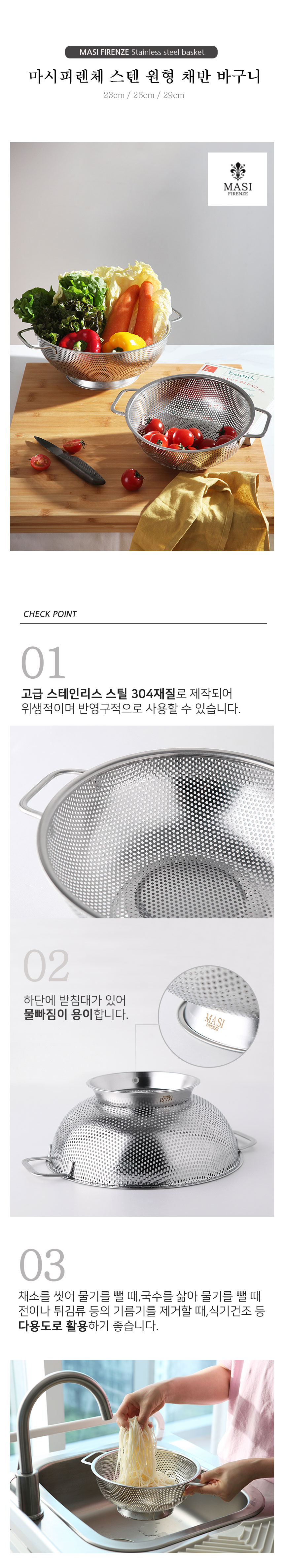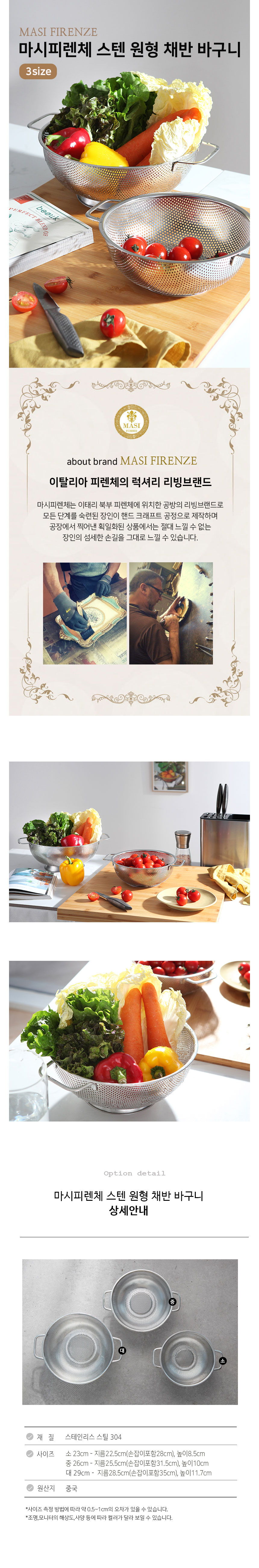 * 마시피렌체 스텐 원형 채반 바구니 (3size)