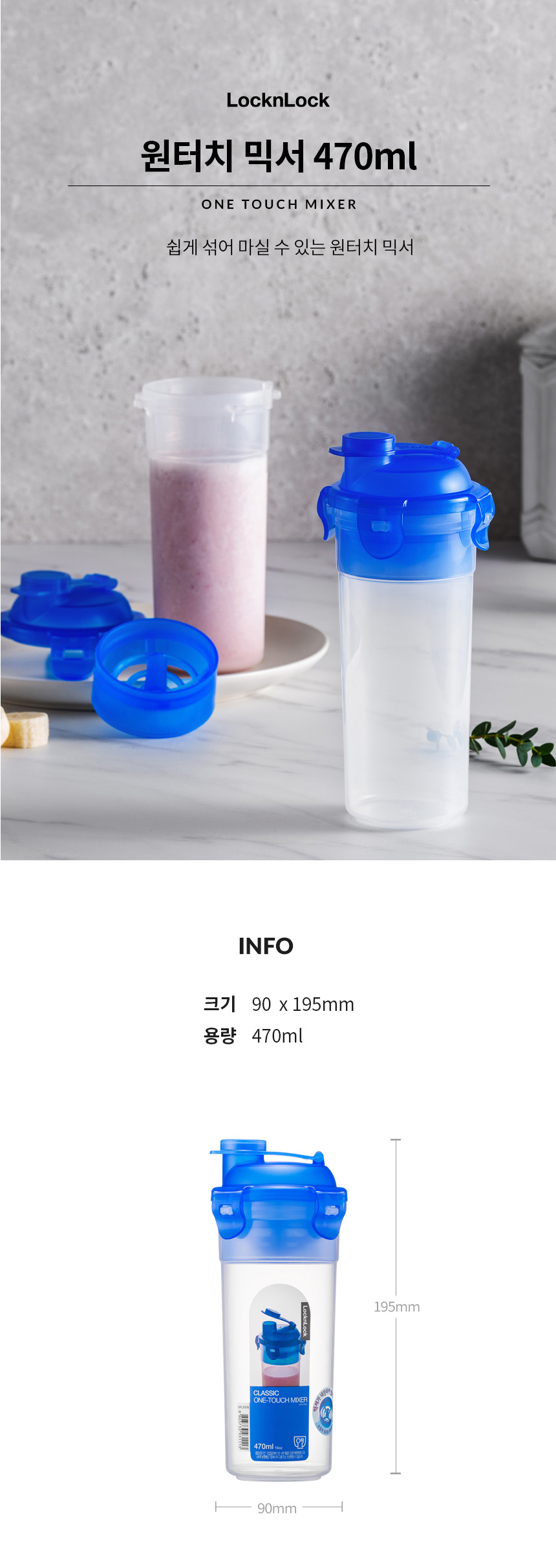 락앤락 원터치 믹서 470ml 1+1 물병 물통 보틀 쉐이커 쉐이크 통 단백질 프로틴 헬스 TOP_HPL931Ns2