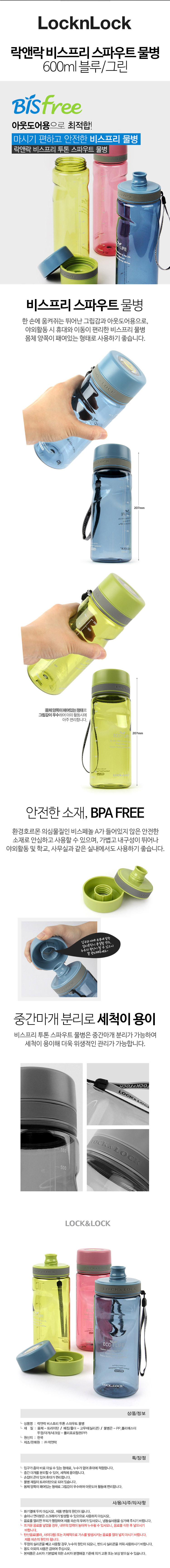 락앤락 비스프리 투톤 스파우트 물병 600ml 그린 1+1 물통 보틀 스트랩 트라이탄 끈 TOP_ABF635Gs2