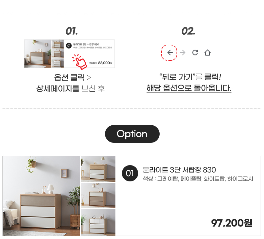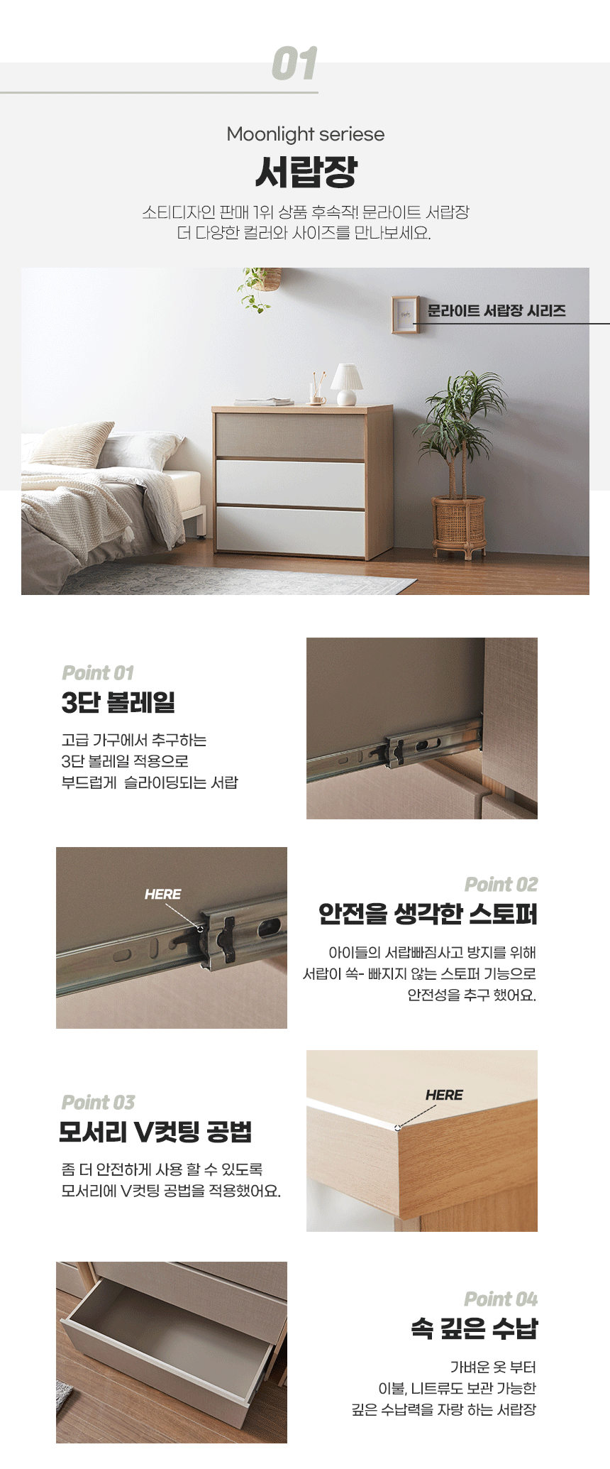 문라이트 광폭 와이드/3단/5단 서랍장 모음