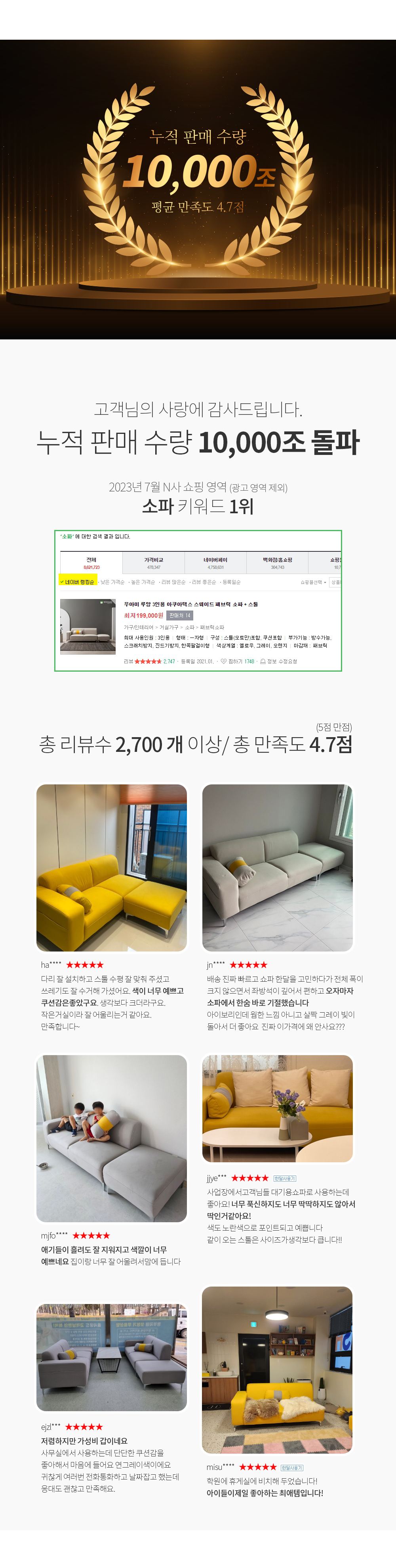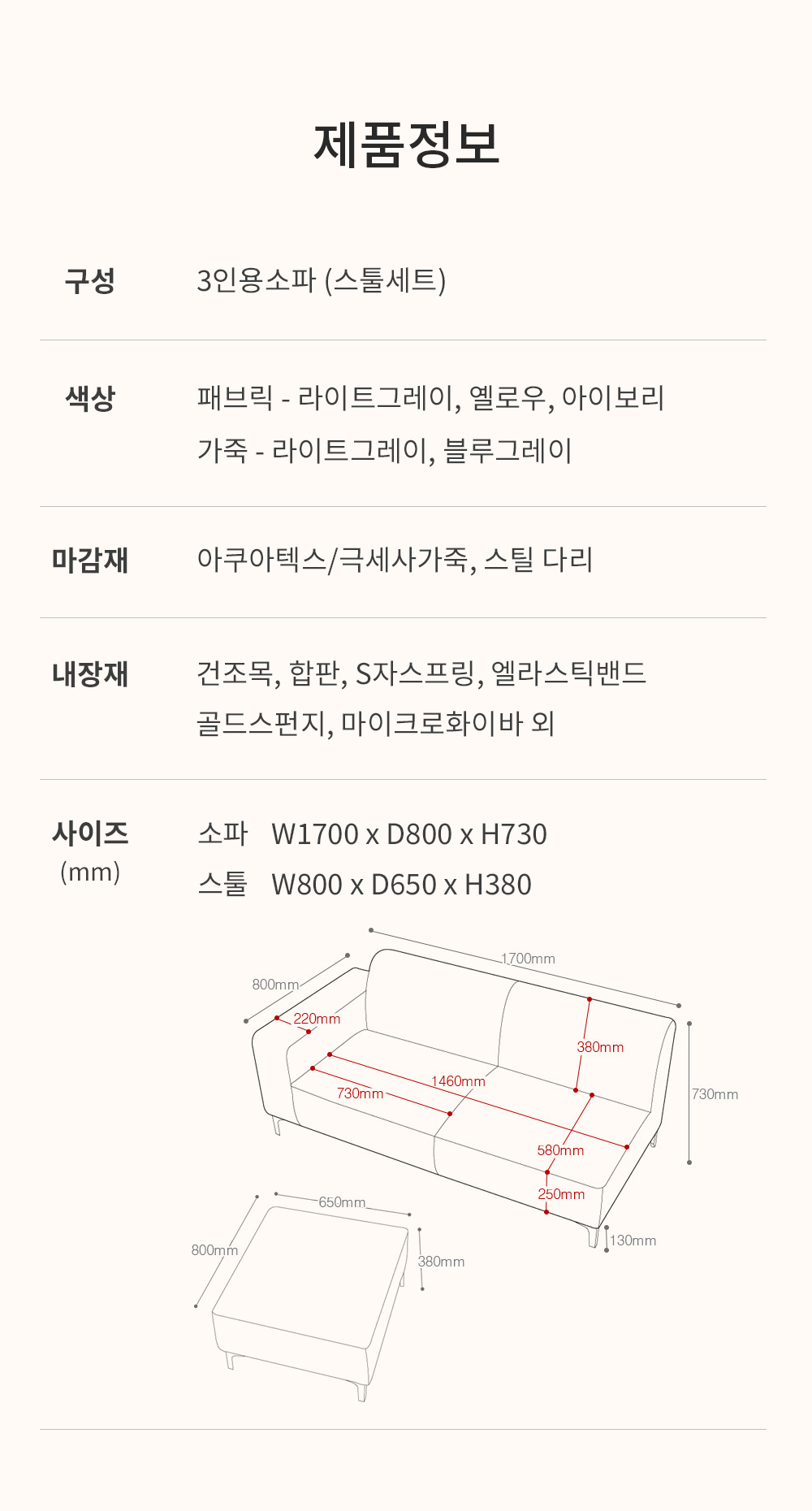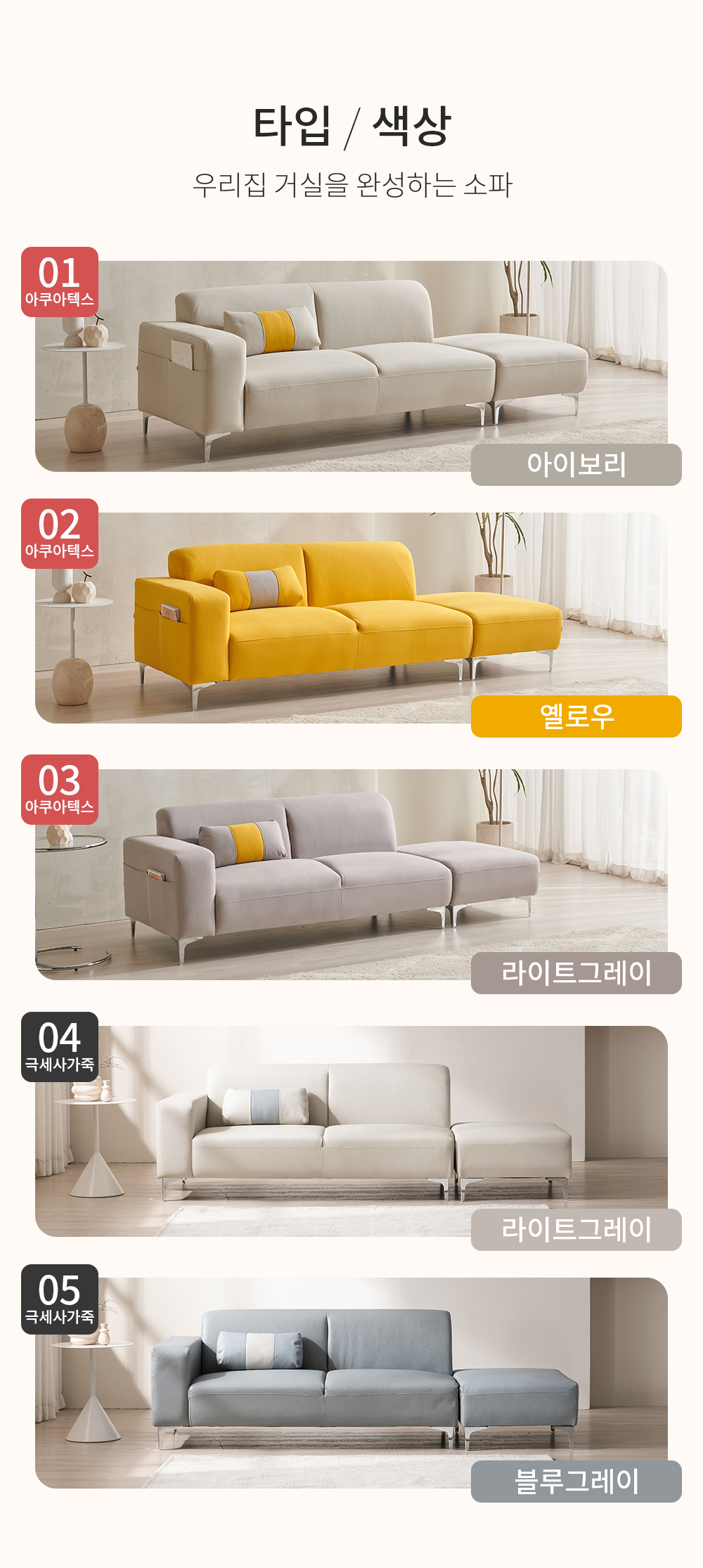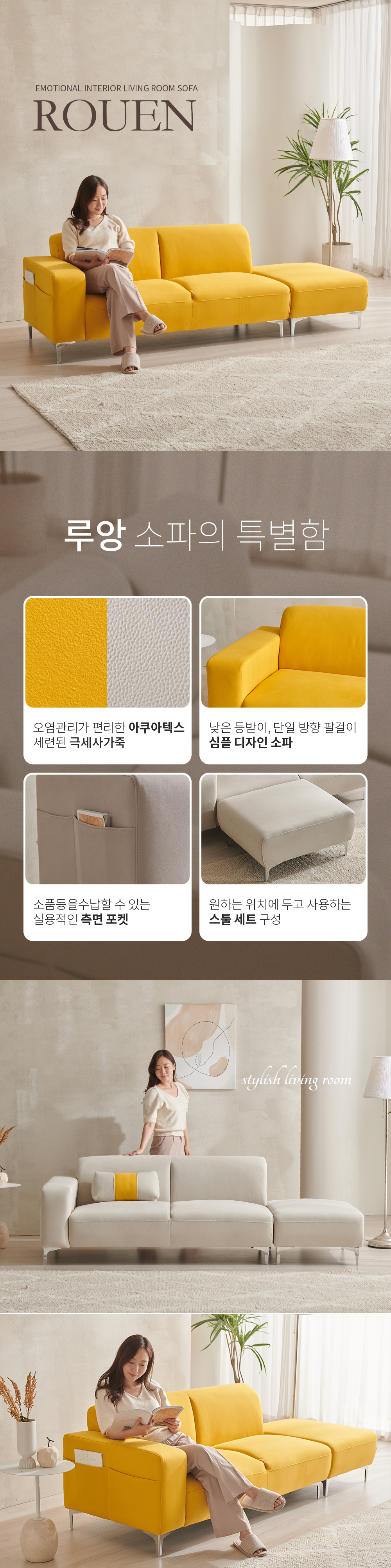 우아미가구 루앙 3인용 아쿠아텍스 소파+스툴세트 3color