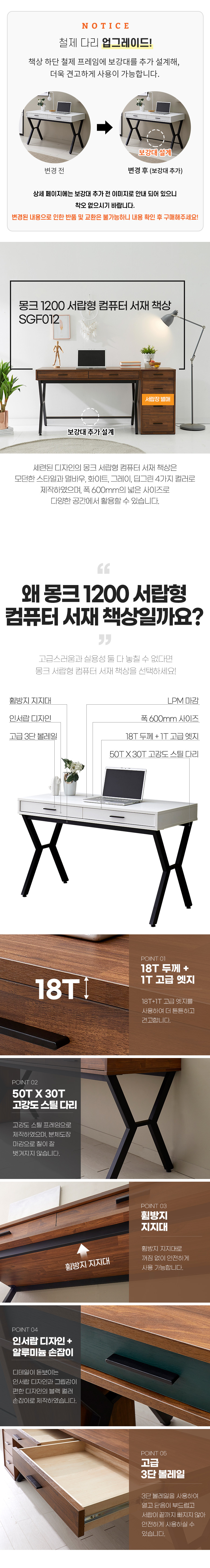 몽크 1200 서랍형 컴퓨터 서재 책상 SGF012C