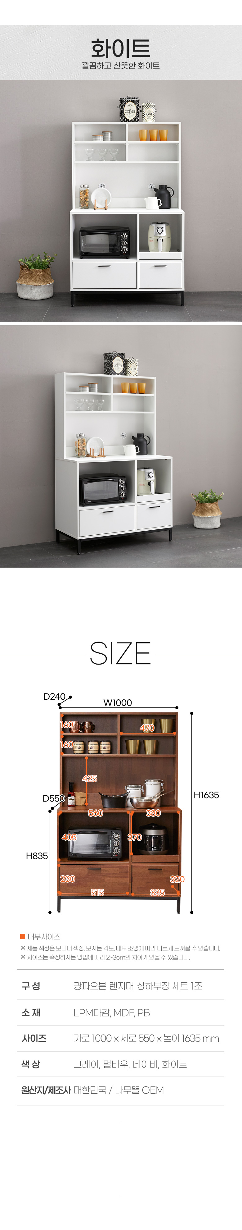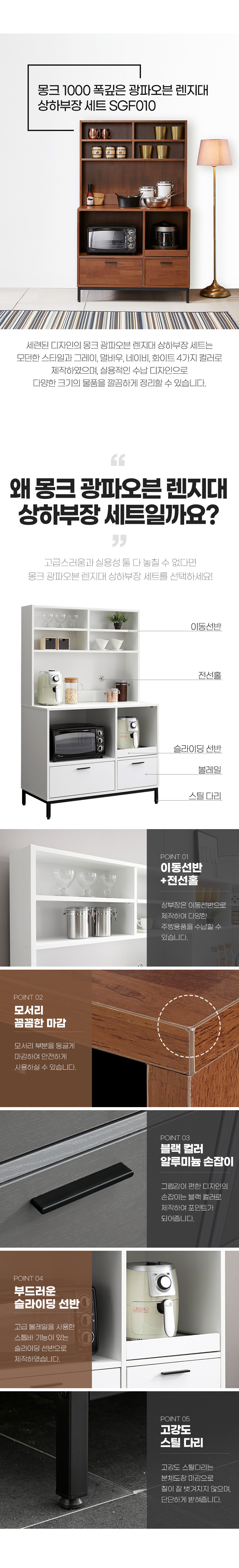 몽크 1000 폭깊은 광파오븐 렌지대 상하부장 세트 SGF010C