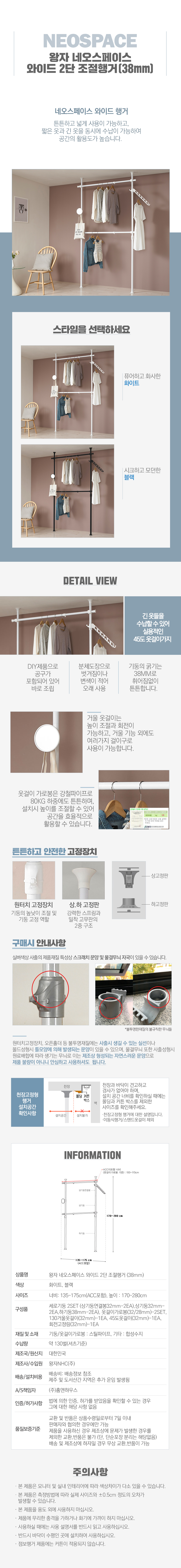 [왕자행거] 네오스페이스 와이드 2단 조절행거(38mm)