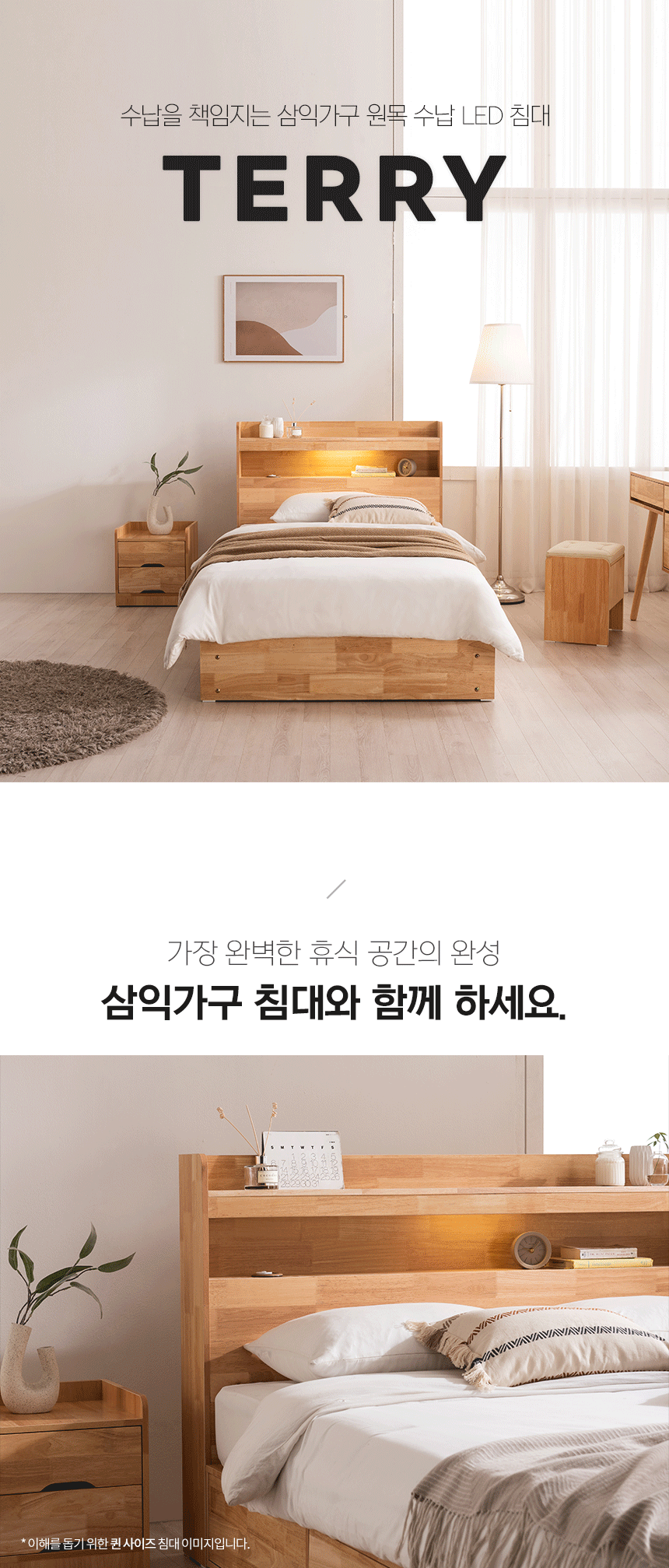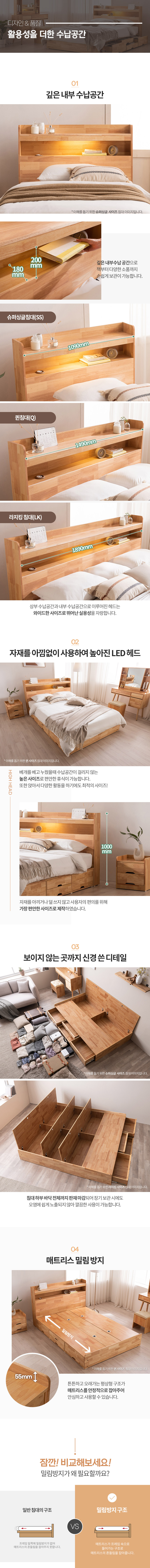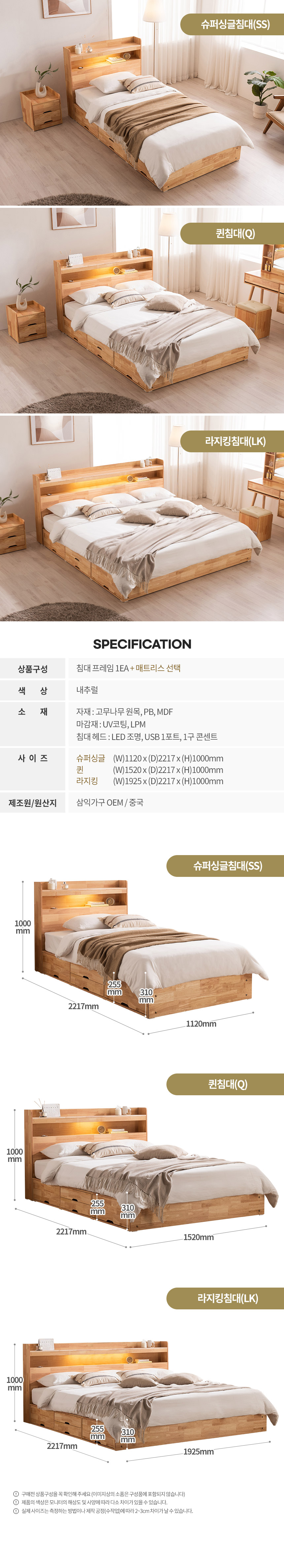 삼익가구 태리 LED 4단 수납 원목 침대(SS/Q/LK)