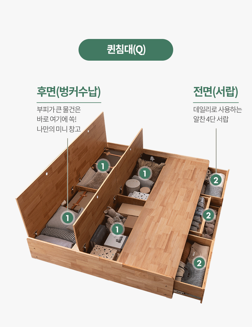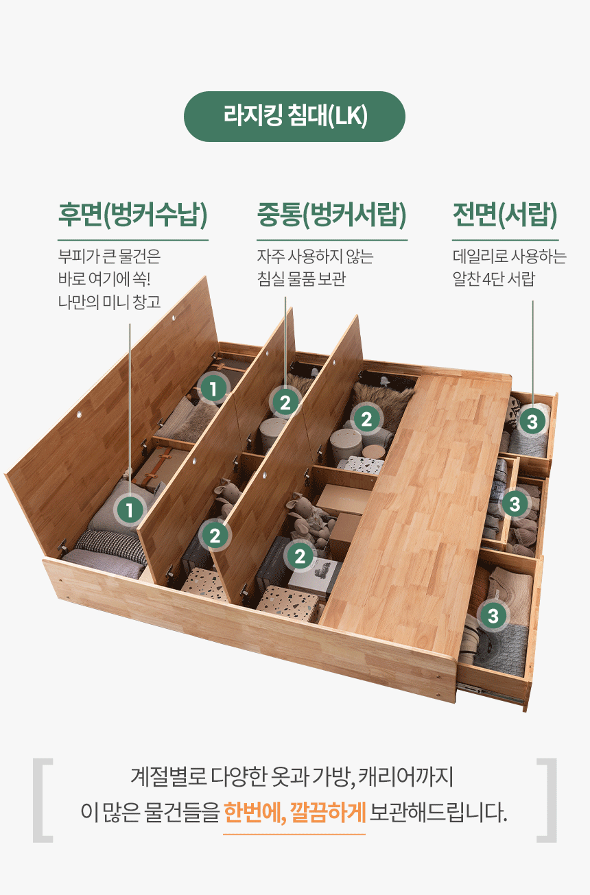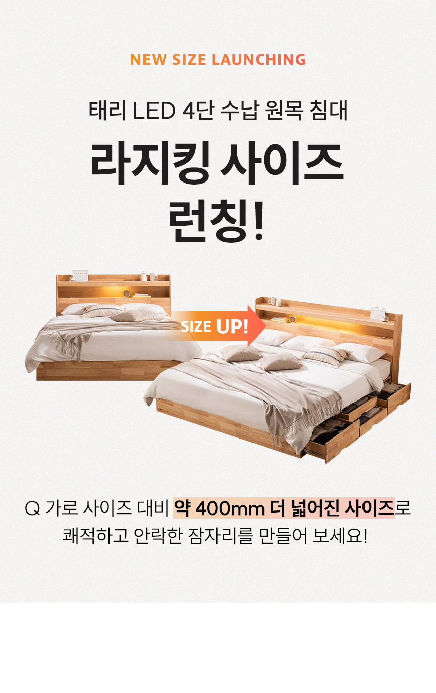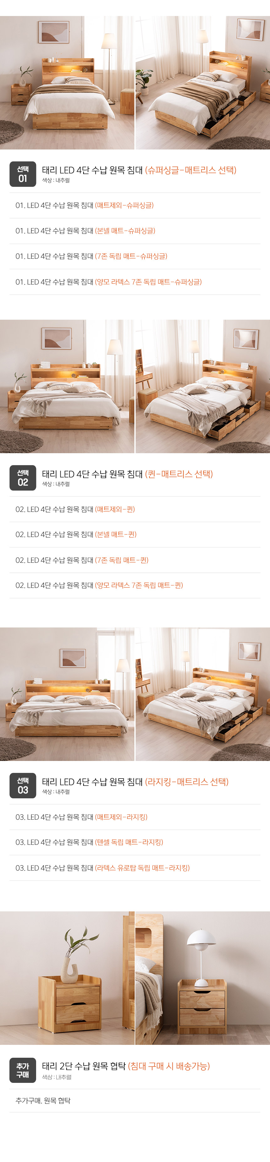 삼익가구 태리 LED 4단 수납 원목 침대(SS/Q/LK)