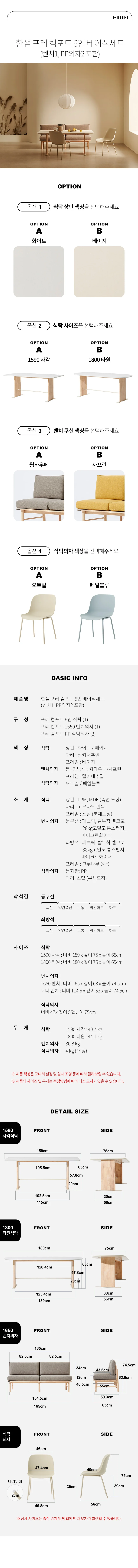(new시즌컬러) 포레 컴포트 6인 베이직세트 (벤치1, PP의자2 포함)