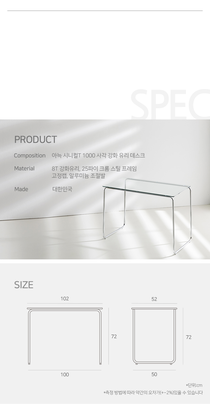 아늑 시니컬T 1000 사각 강화 유리 데스크/책상/티 테이블