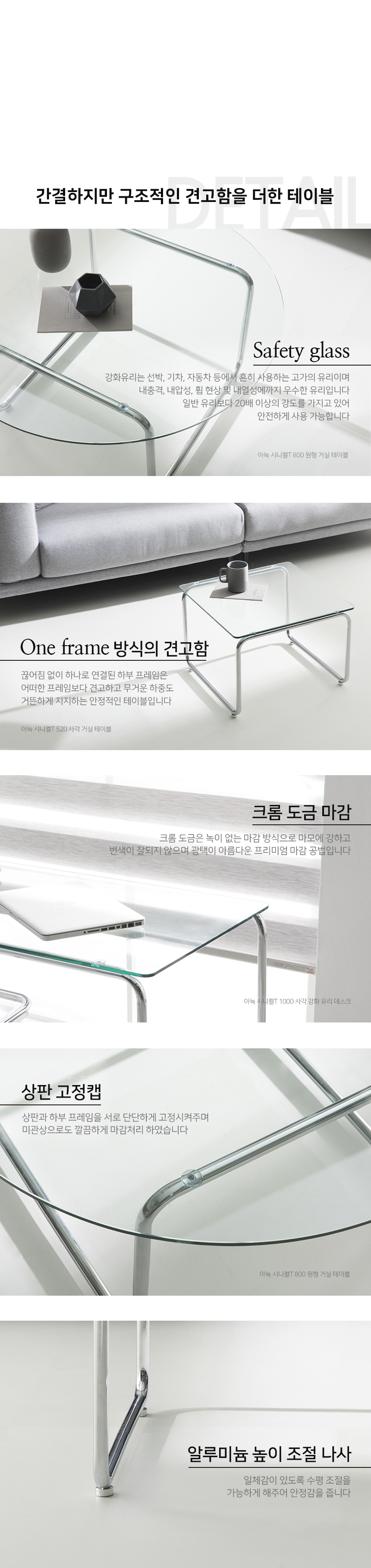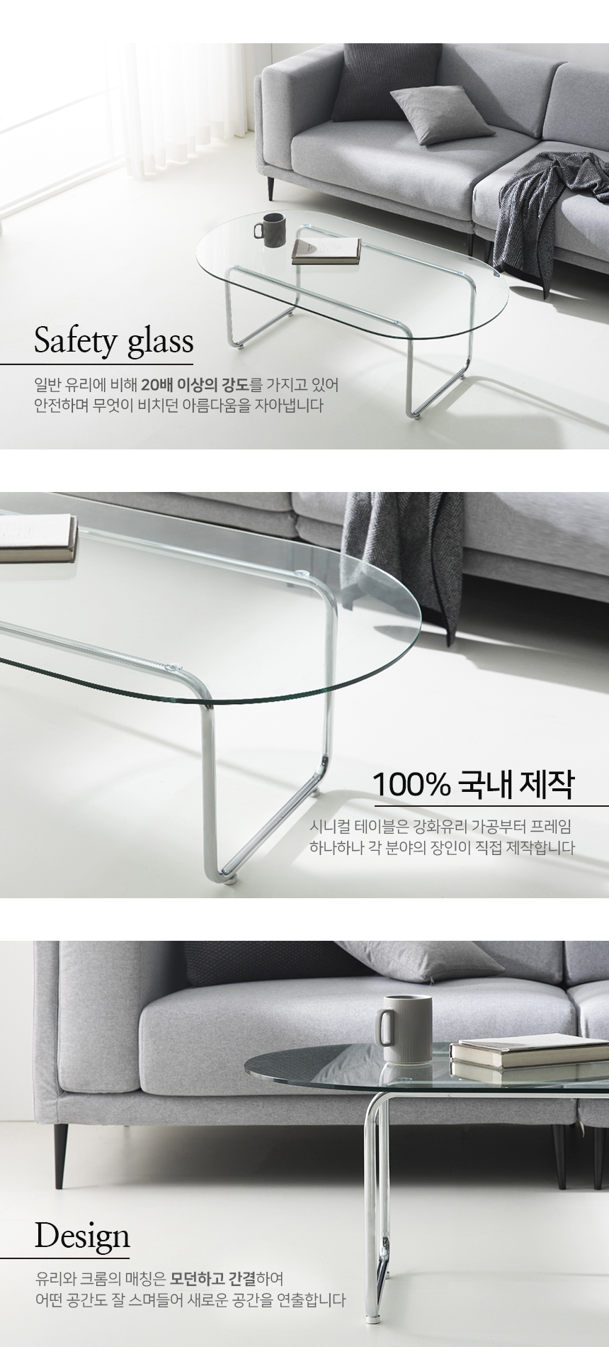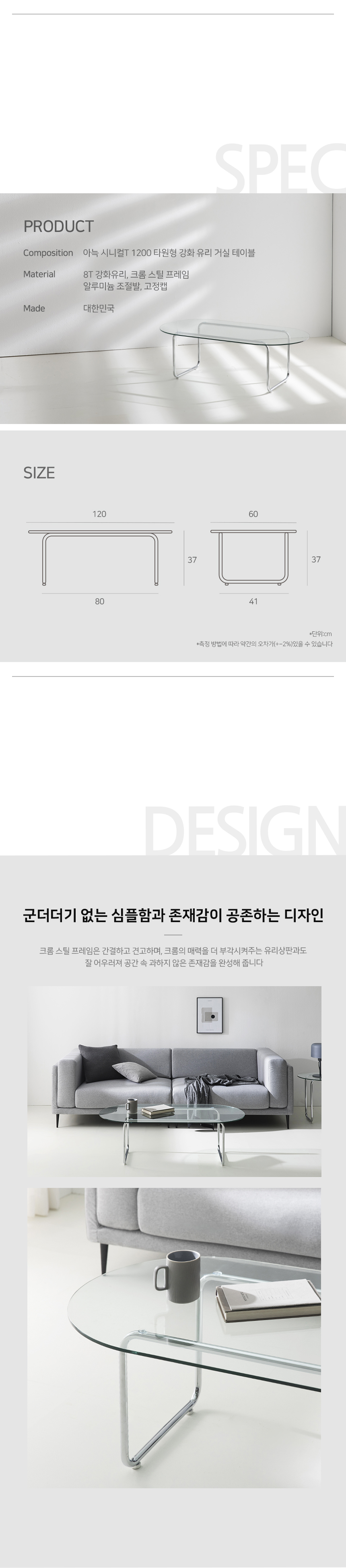 아늑 시니컬T 1200 강화 유리 거실 테이블/원형 소파 테이블