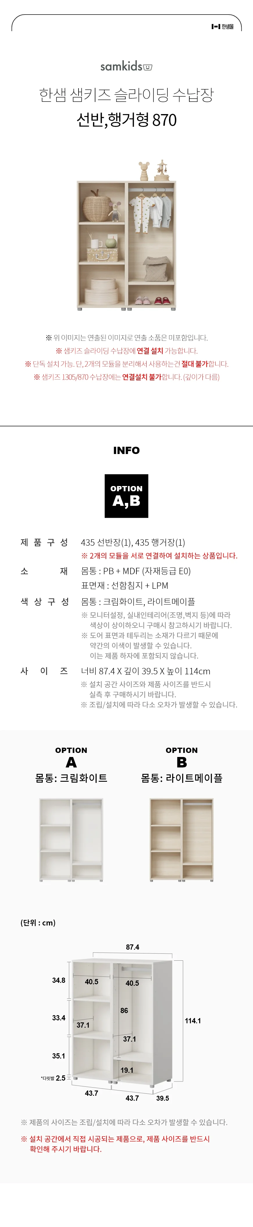 샘키즈 슬라이딩 수납장 선반,행거형 870