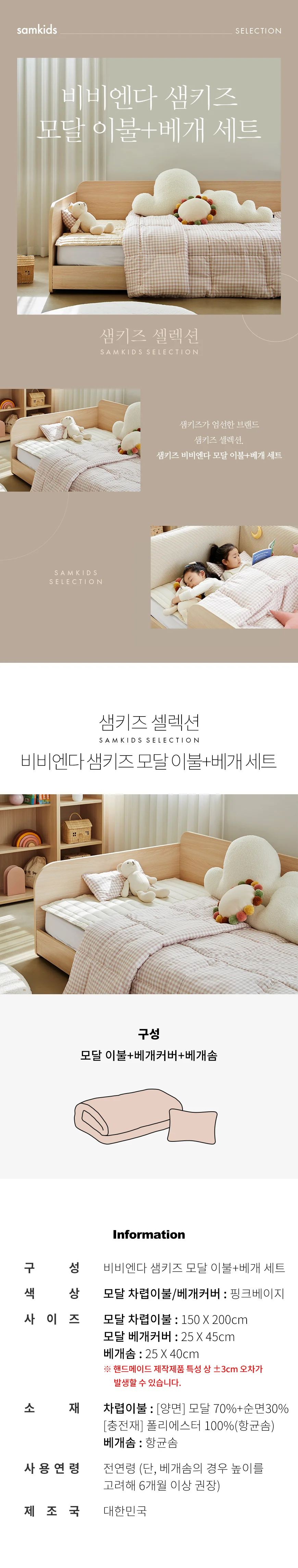 (한샘몰pick) 비비엔다 샘키즈 모달 이불+베개세트_슈퍼싱글