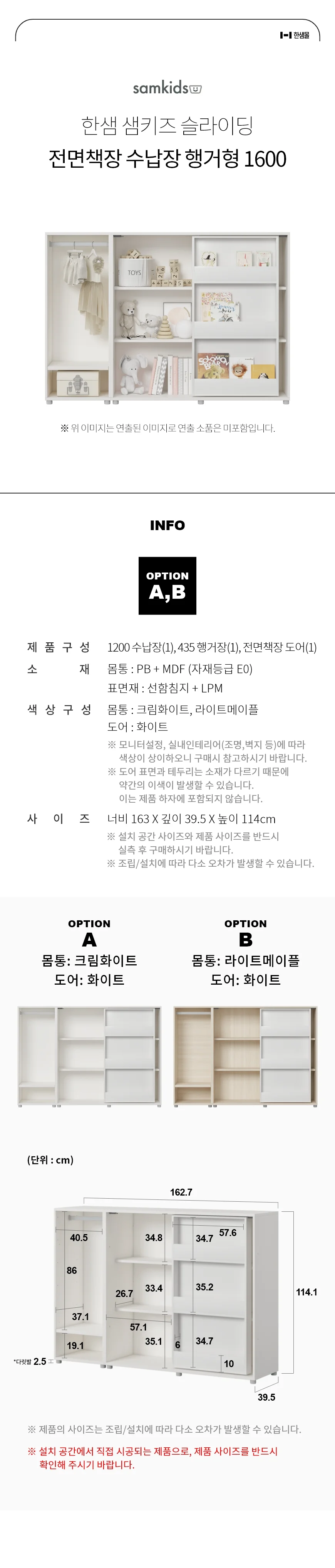 샘키즈 슬라이딩 전면책장 수납장 행거형 1600