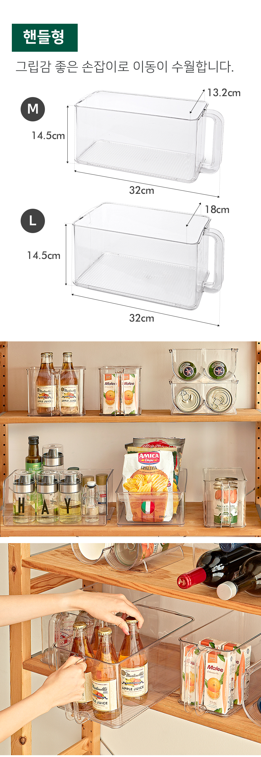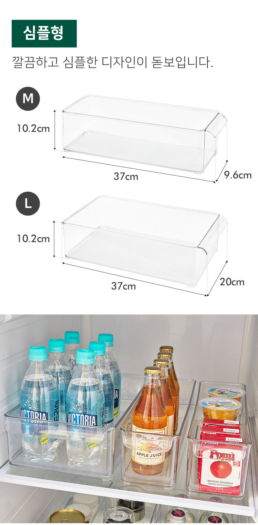 리본제이 리메이크 수납 정리 트레이 냉장고 보관용기 음료정리 수납함 /핸들형 (M/L)