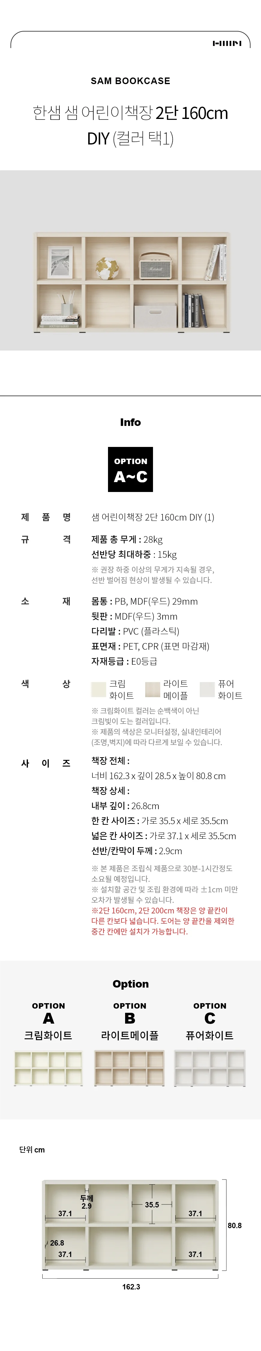 샘 어린이책장 2단 160cm DIY(컬러 택1)